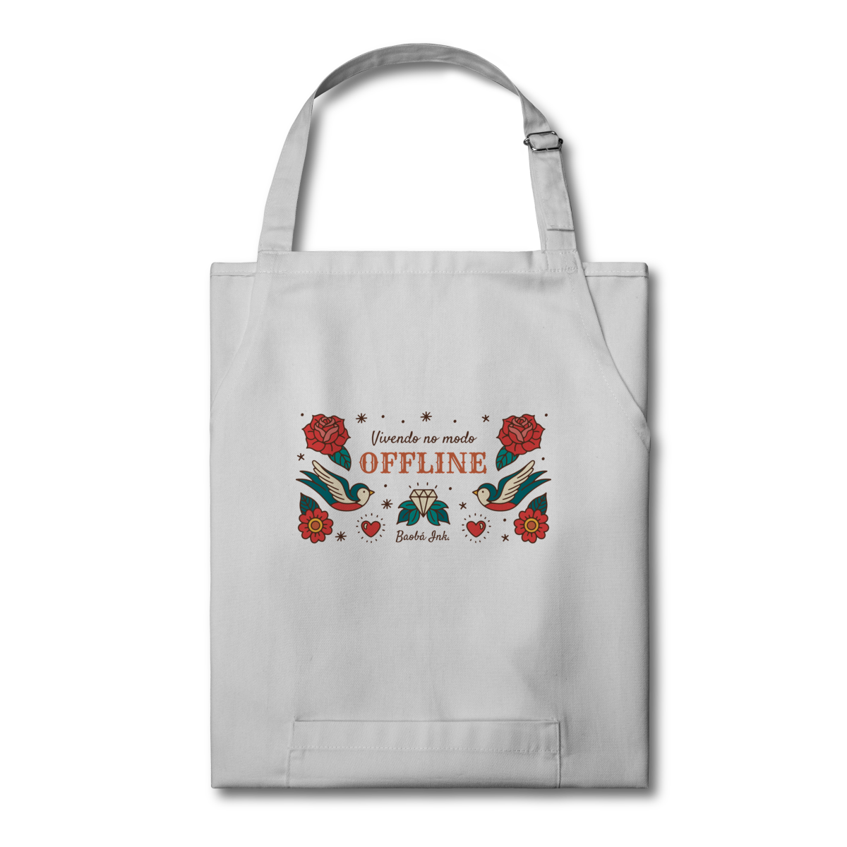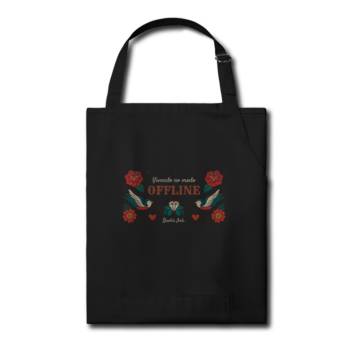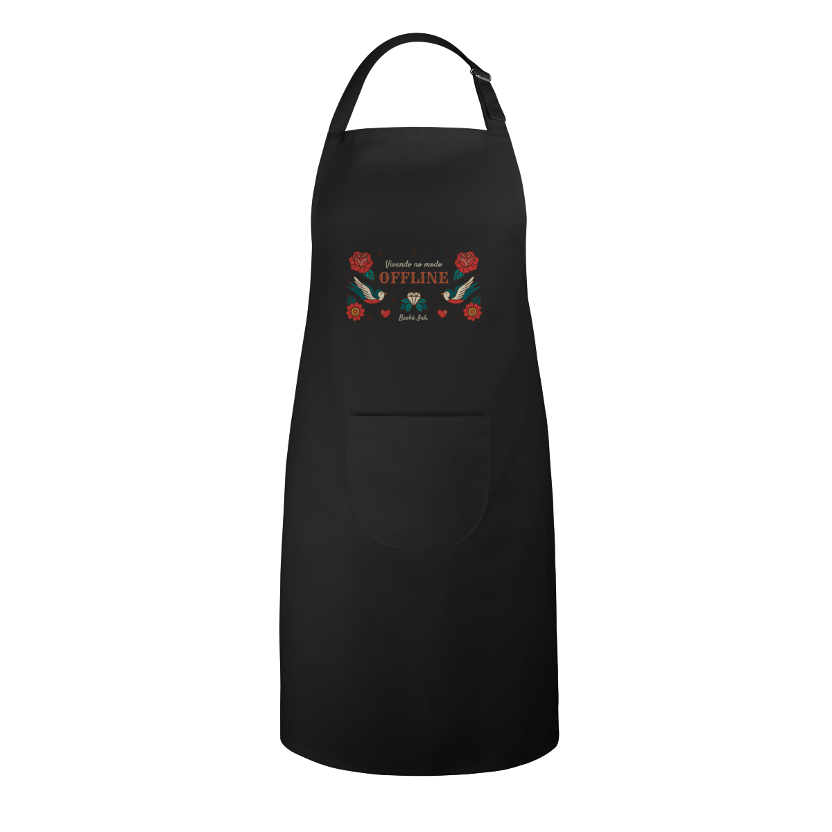 O Avental “Offline” da Baobá Ink traz a arte exclusiva da coleção em uma peça prática e cheia de estilo. Feito em brim resistente, é ideal pra quem encontra prazer nas pausas — seja preparando um café ou um banquete.