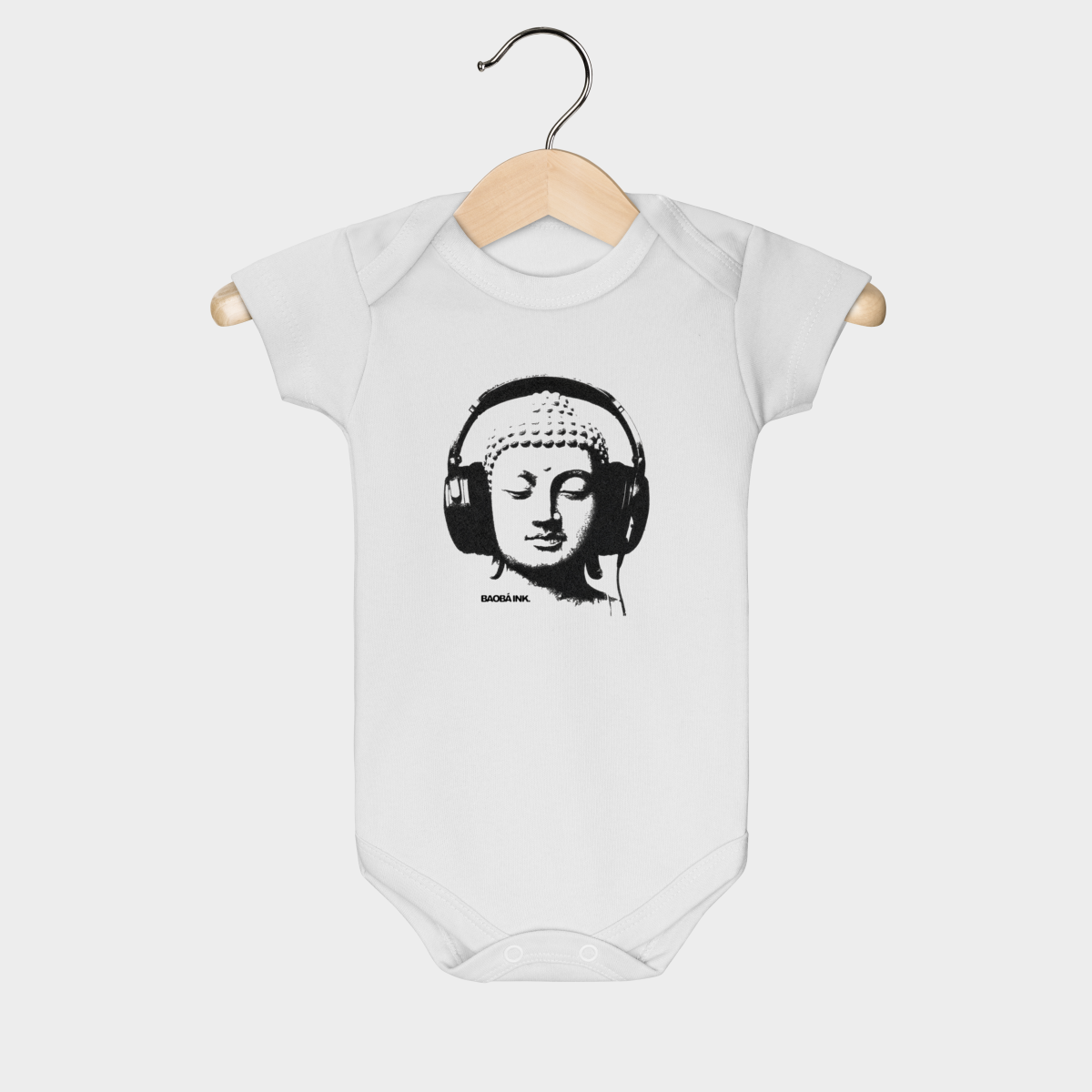 A Linha Mantra agora também chegou nos bebês! Este body une a nossa arte minimalista com um toque leve e espiritual, trazendo o icônico rosto sereno com headphones em uma versão pensada para o conforto dos pequenos.