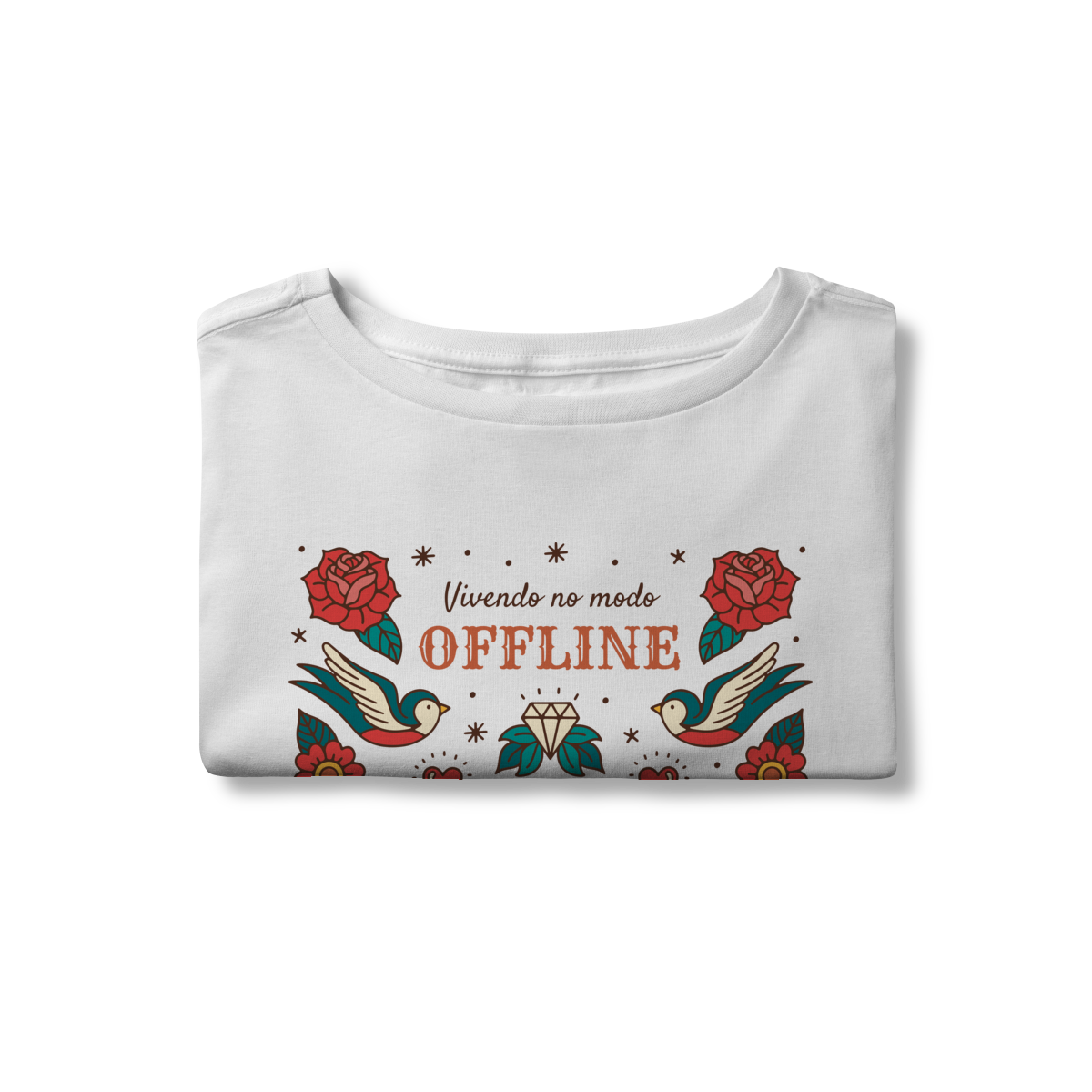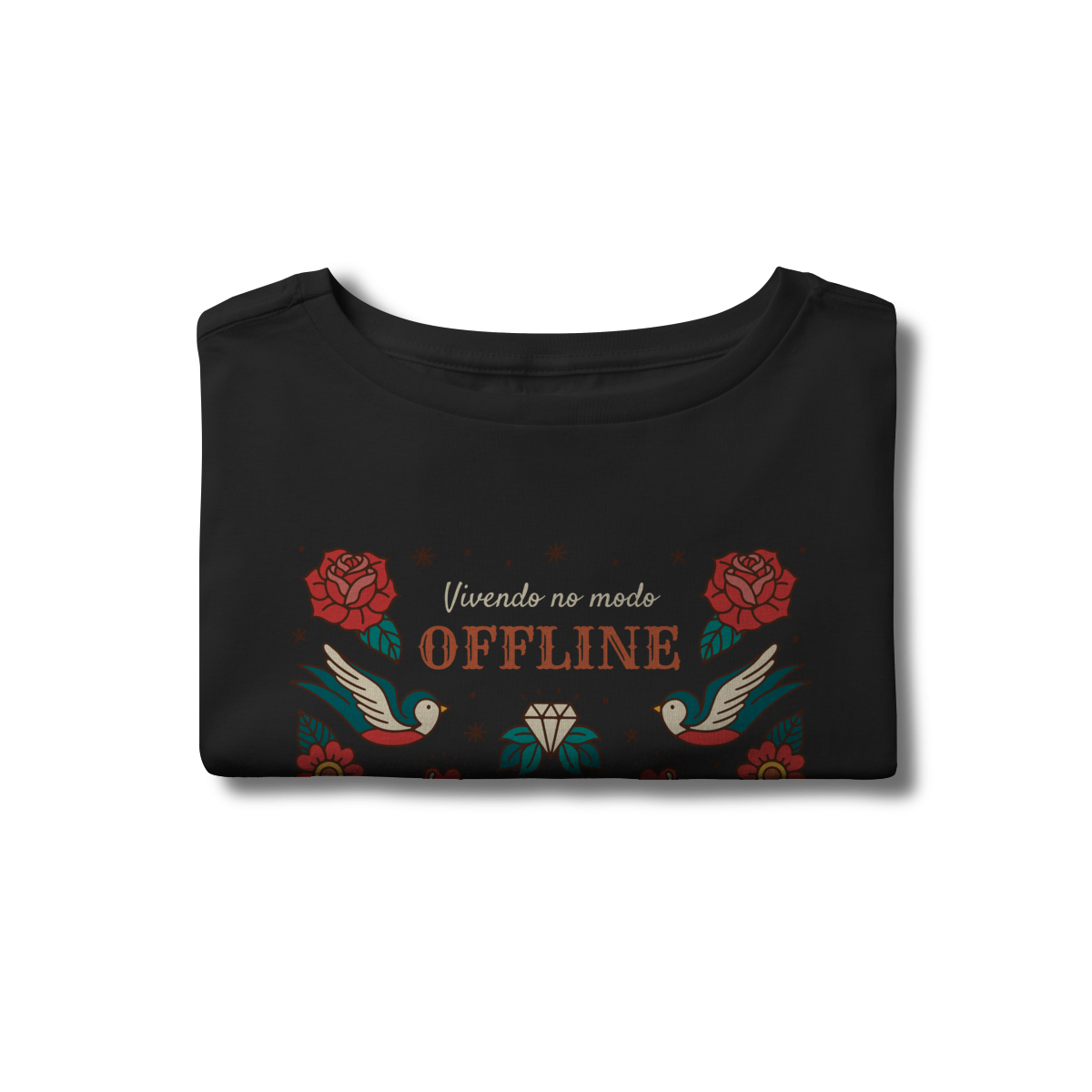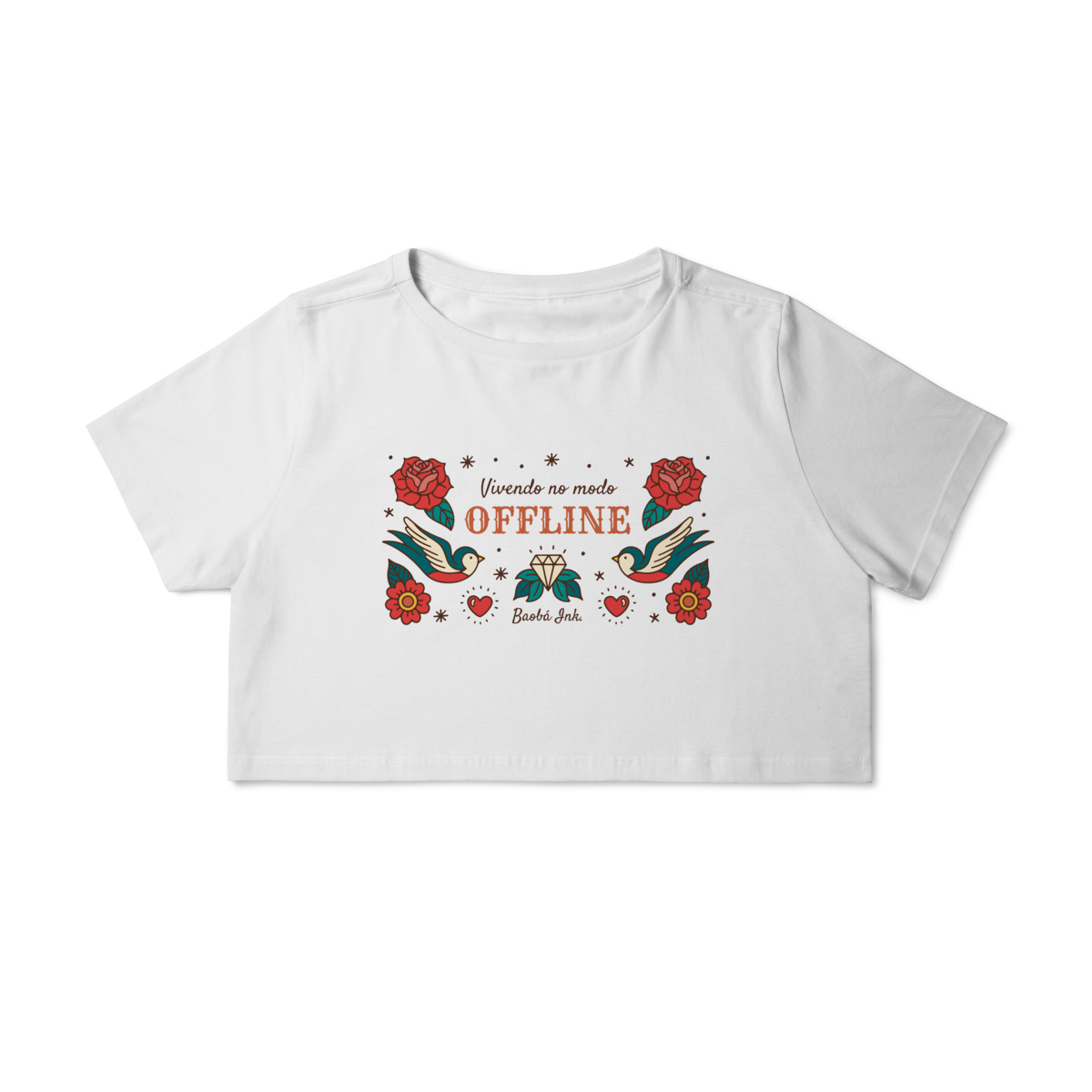 A Camisa Cropped “Offline”, da Baobá Ink, é um lembrete leve e estiloso de que a vida acontece fora da tela. Feita em tecido premium com modelagem soltinha, é perfeita pra quem busca conforto e autenticidade em qualquer ocasião.