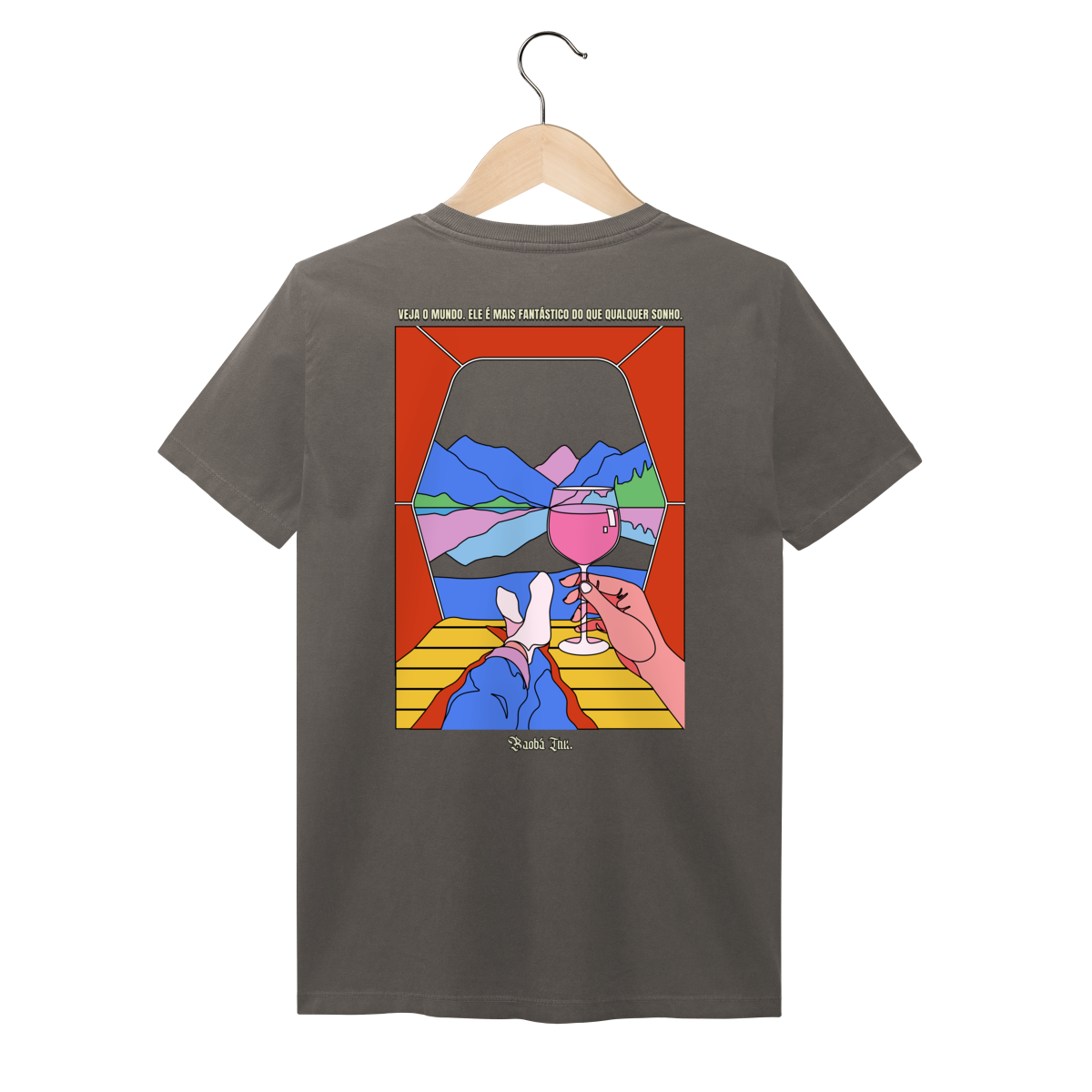 A T-Shirt Estonada “Veja o Mundo” traz a arte original da Baobá Ink nas costas — uma janela para o mundo real, mais fantástico do que qualquer sonho. A lavagem estonada dá um toque vintage e único a cada peça, com visual atemporal e confortável desde o primeiro uso.