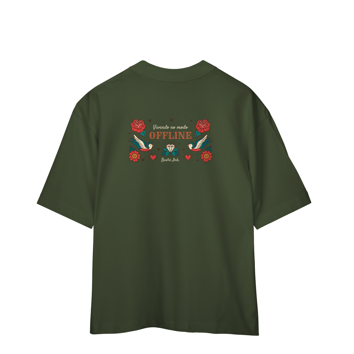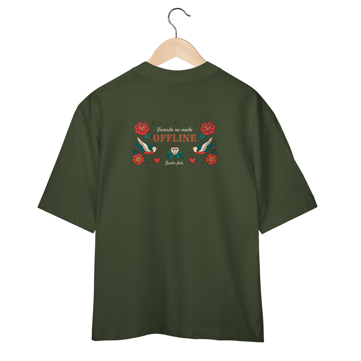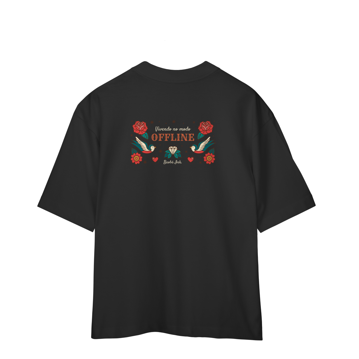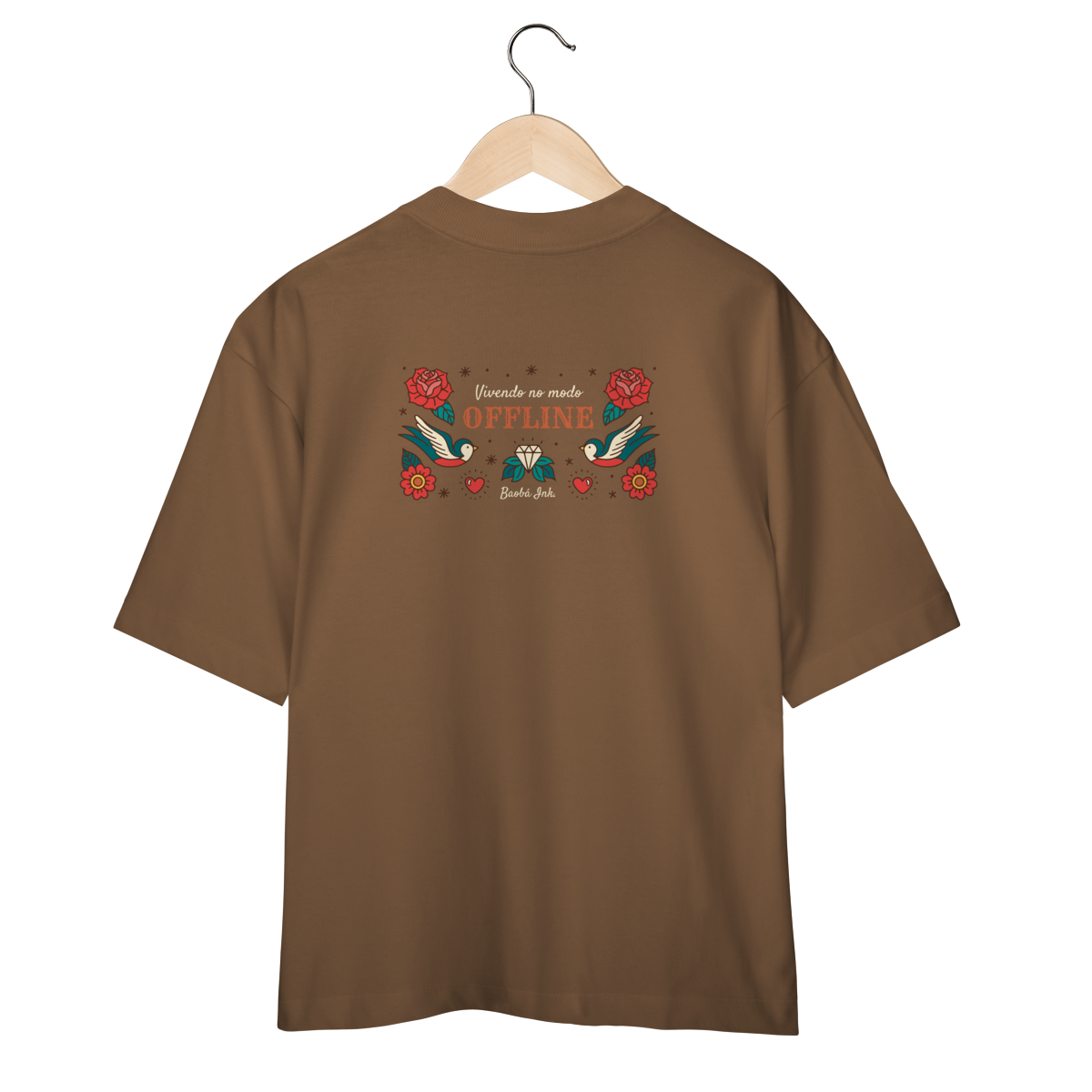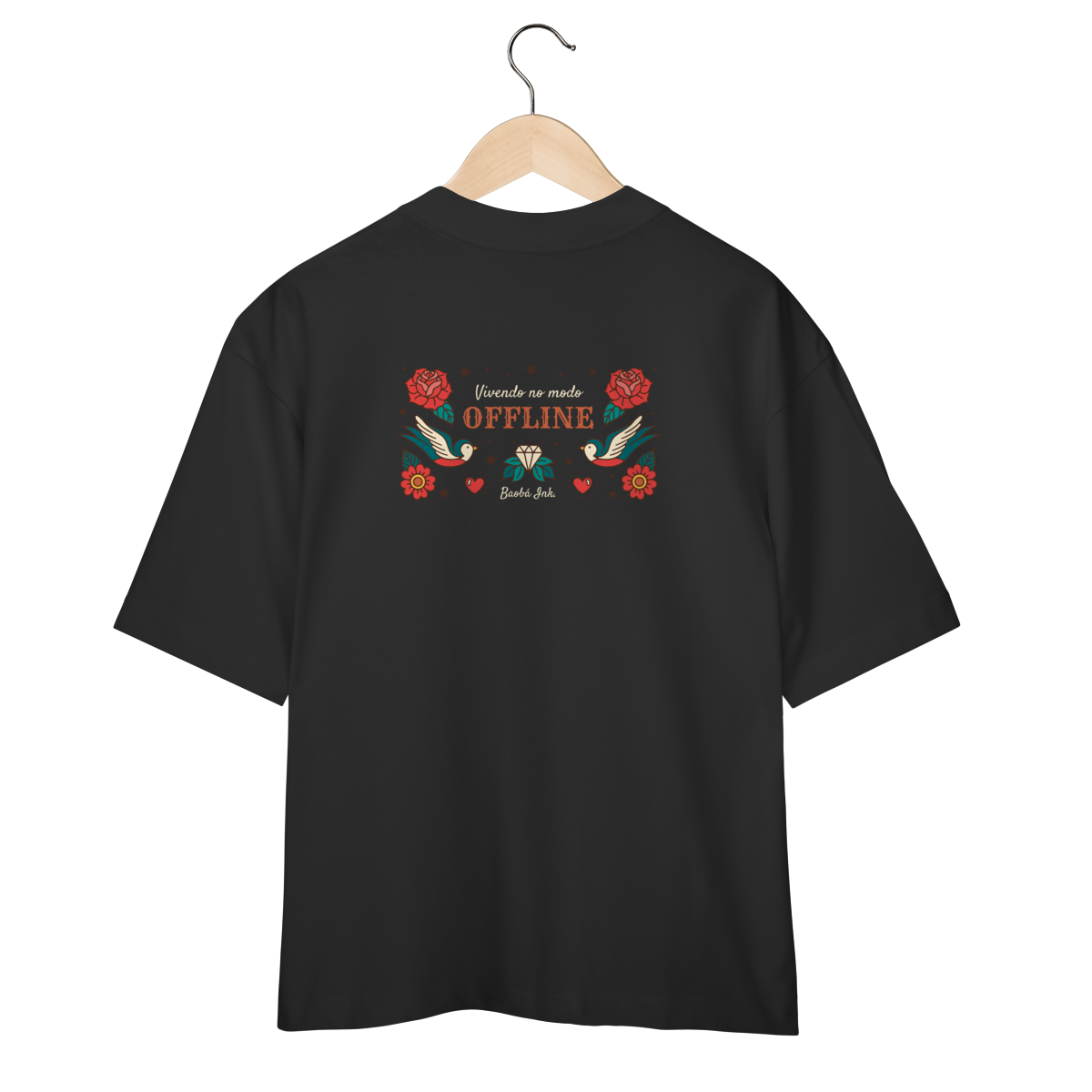 A Oversized “Offline” da Baobá Ink une conforto e atitude em uma peça feita pra quem prefere viver fora da bolha digital. A arte nas costas celebra o equilíbrio: flores, pássaros e o silêncio necessário pra reconectar com o mundo real.