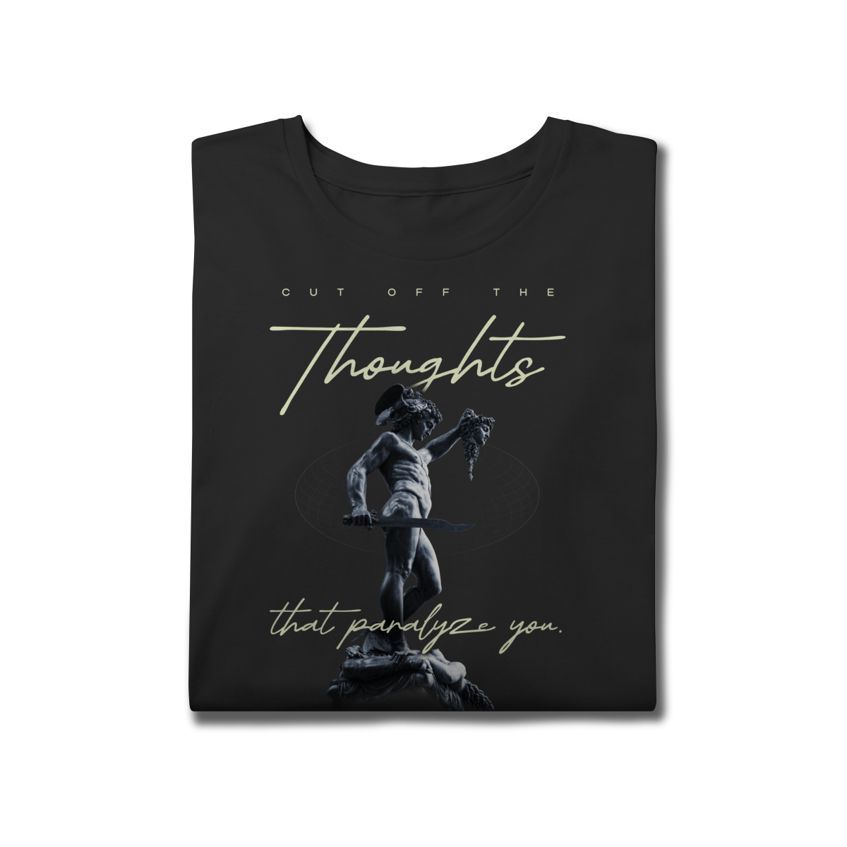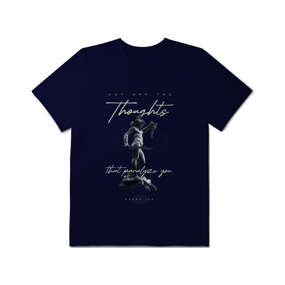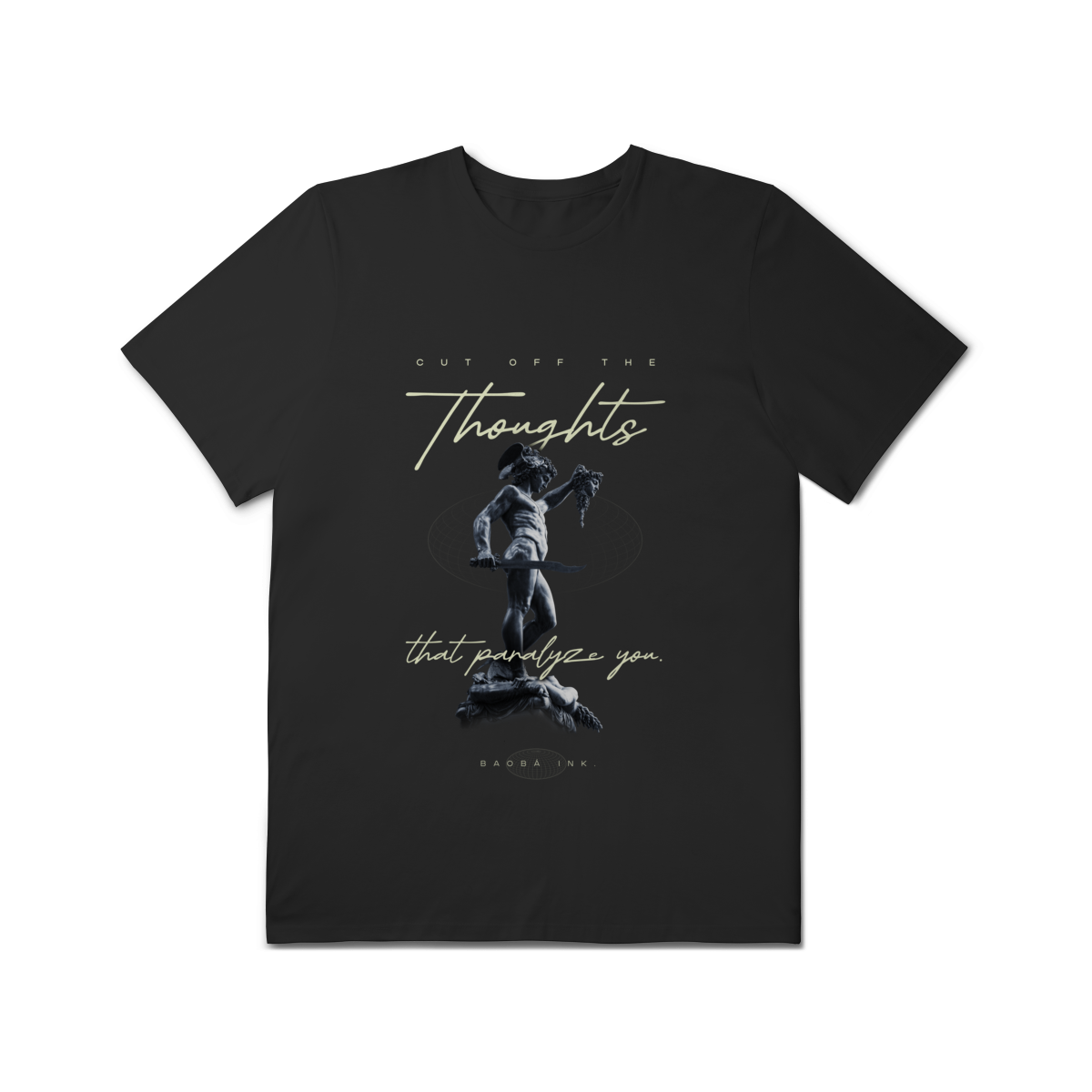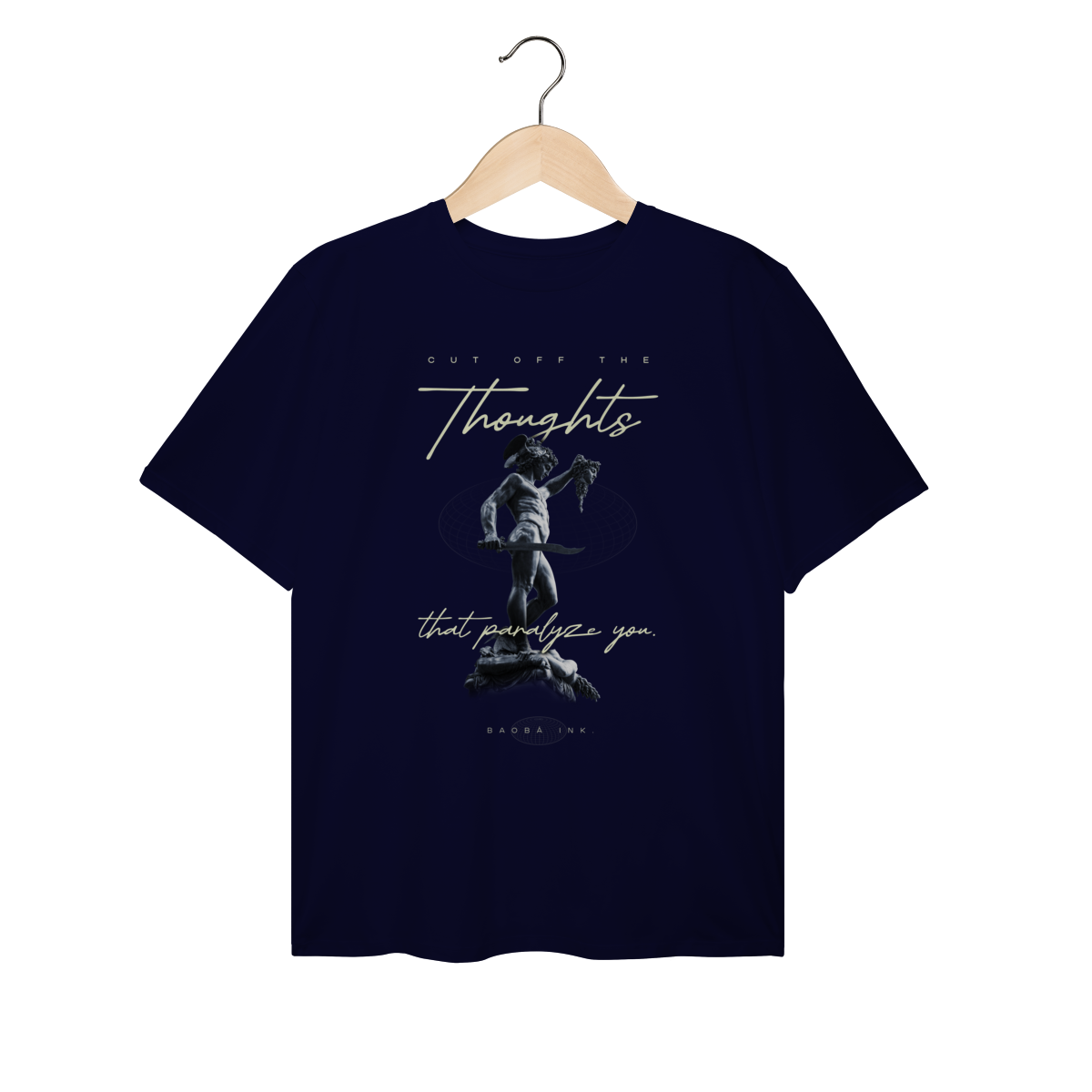 • Estampa em alta definição “Cut off the thoughts that paralyze you”, com arte exclusiva Baobá Ink.