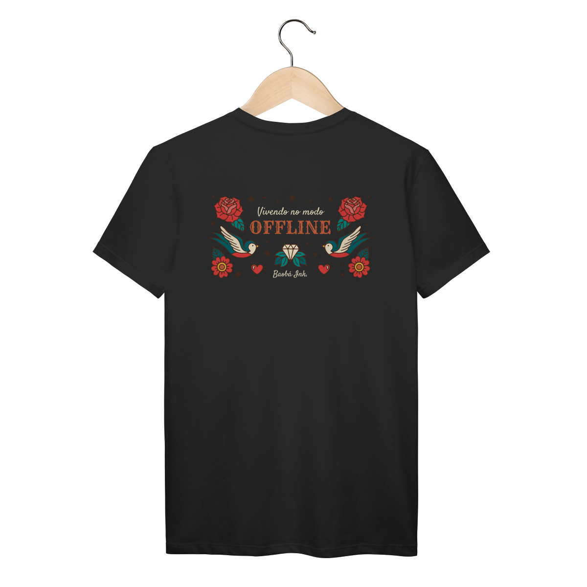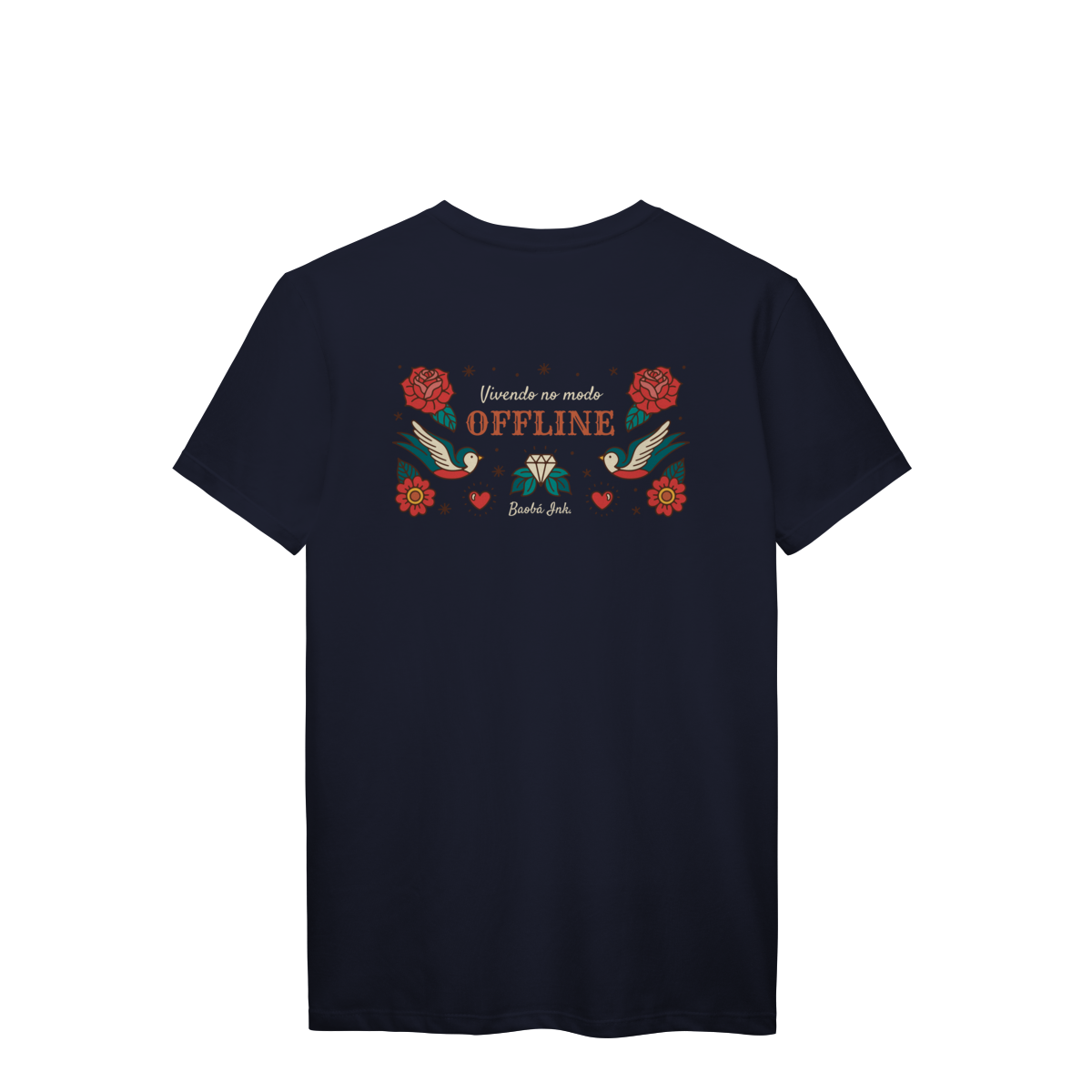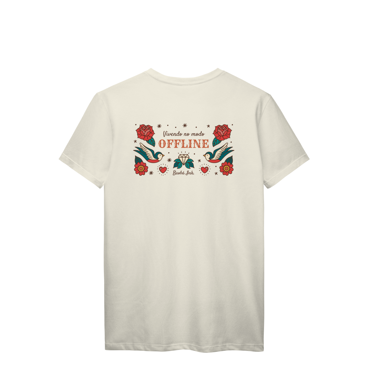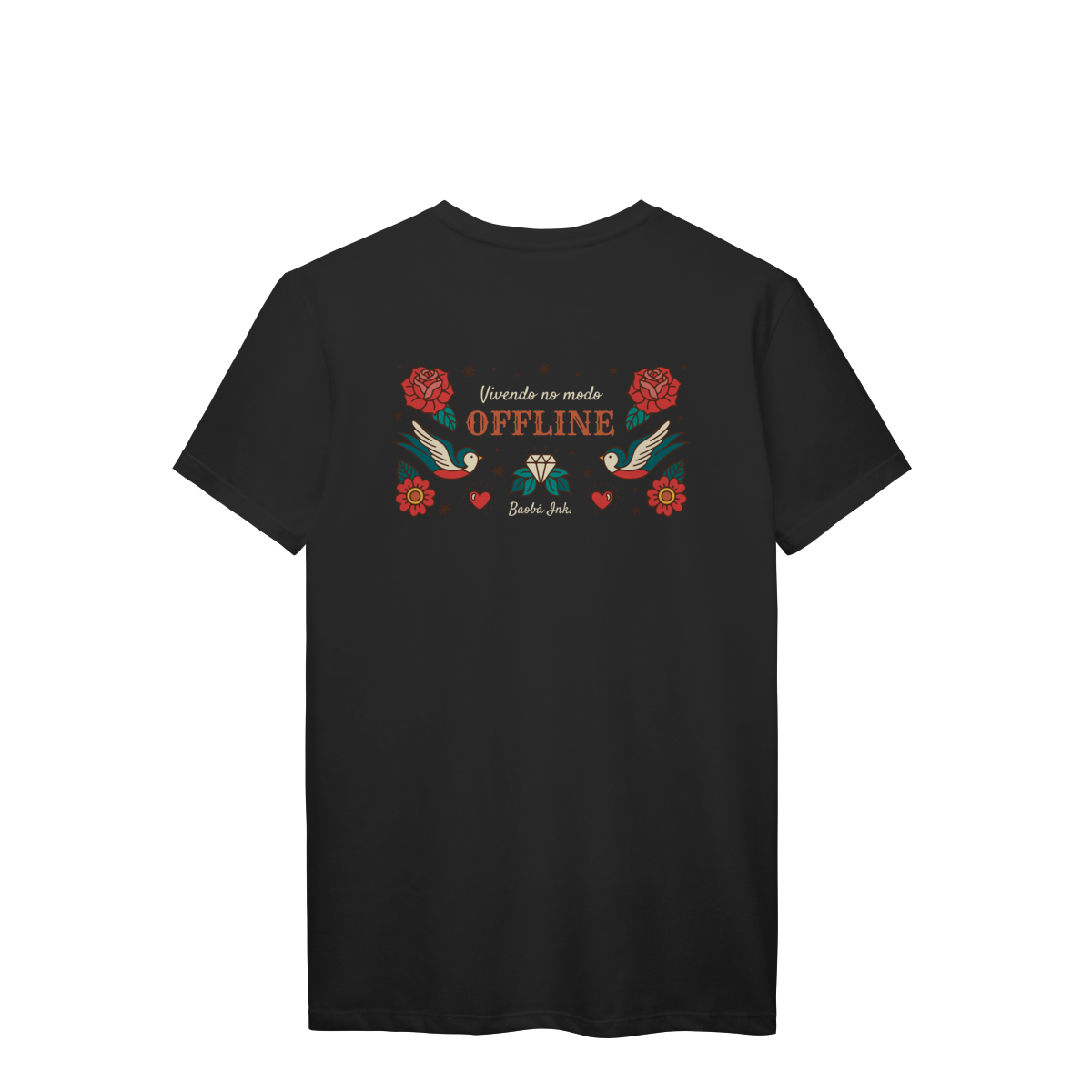 A T-Shirt Prime “Offline” da Baobá Ink é um lembrete pra desconectar do caos e reconectar com o essencial. A arte nas costas traz pássaros, flores e o símbolo da liberdade — um tributo visual à paz que vem quando a gente pausa.