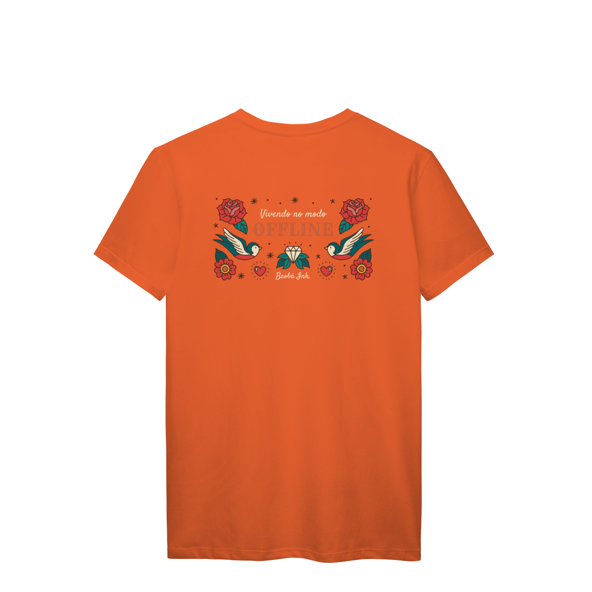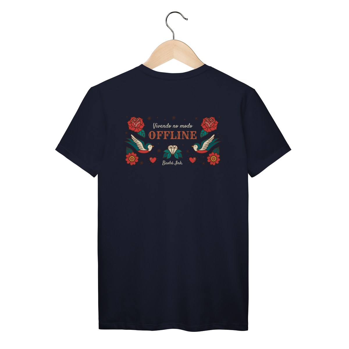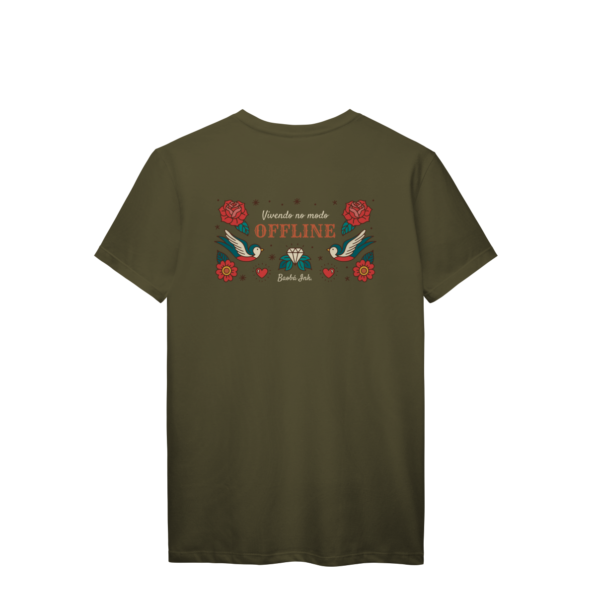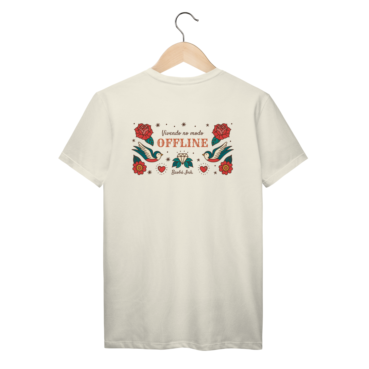 A T-Shirt Prime “Offline” da Baobá Ink é um lembrete pra desconectar do caos e reconectar com o essencial. A arte nas costas traz pássaros, flores e o símbolo da liberdade — um tributo visual à paz que vem quando a gente pausa.