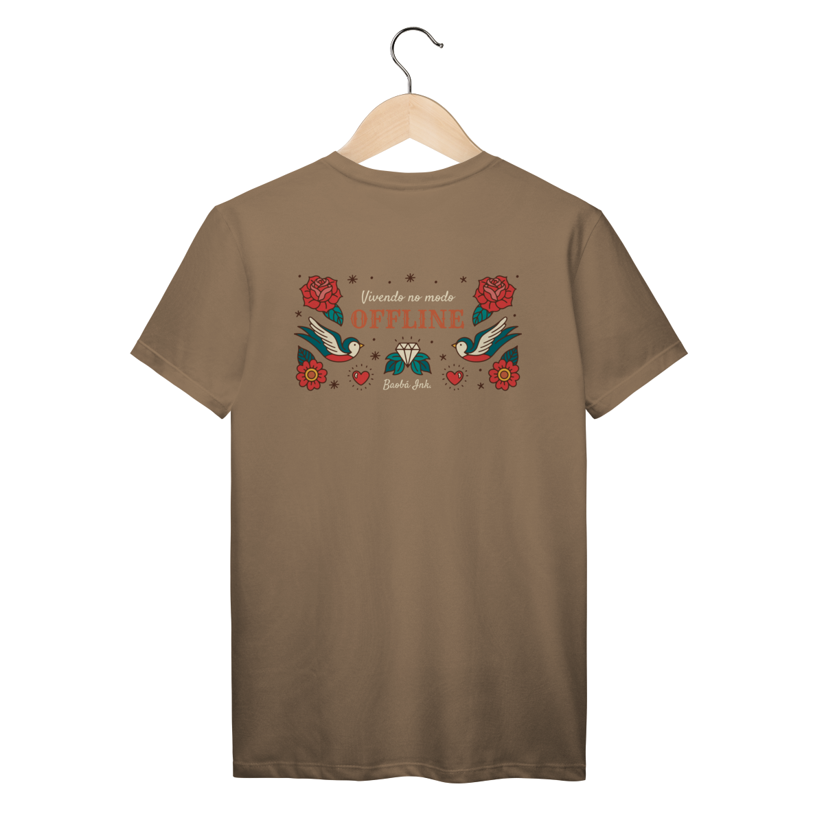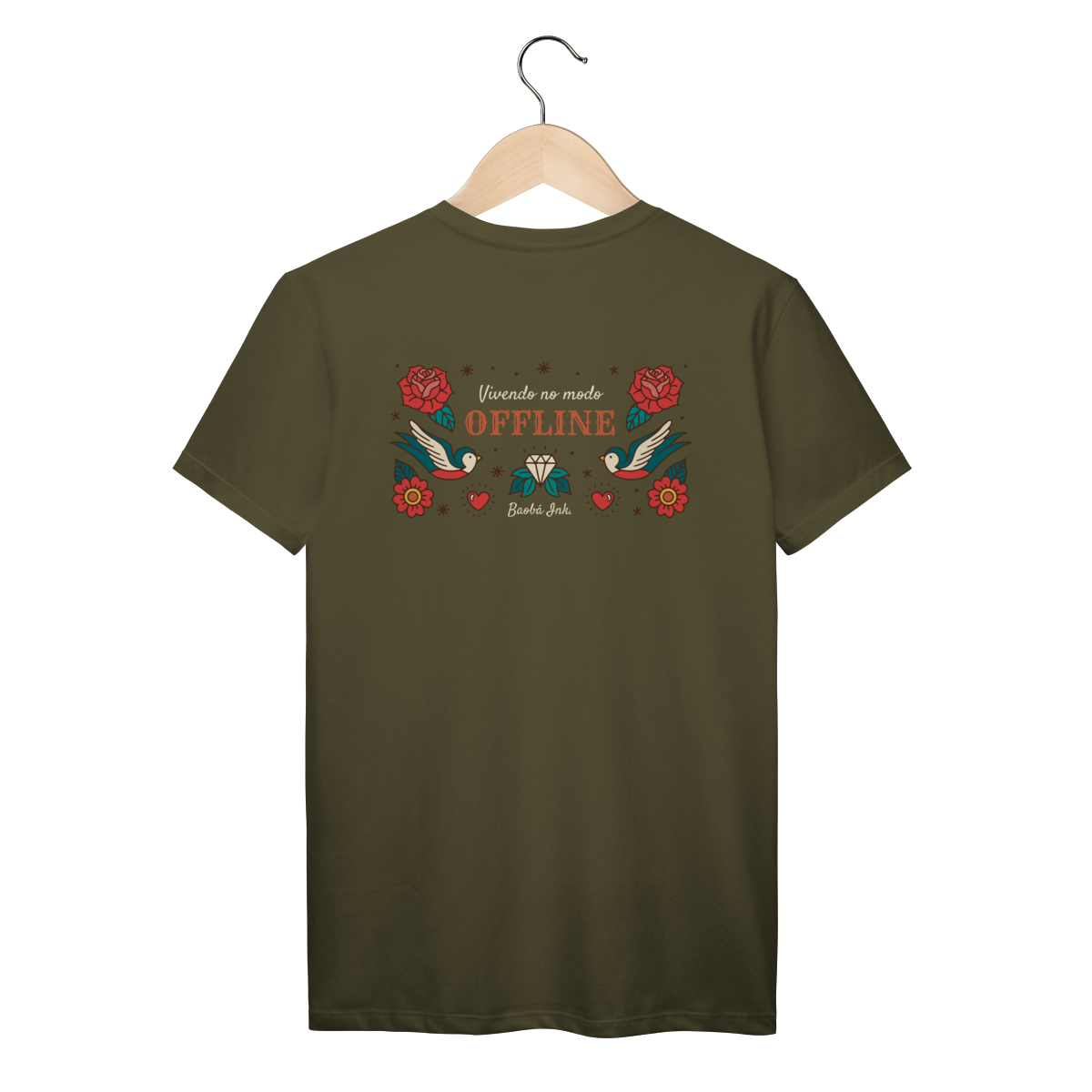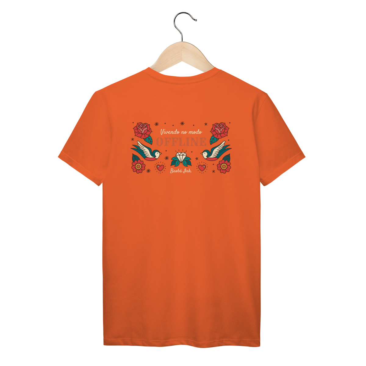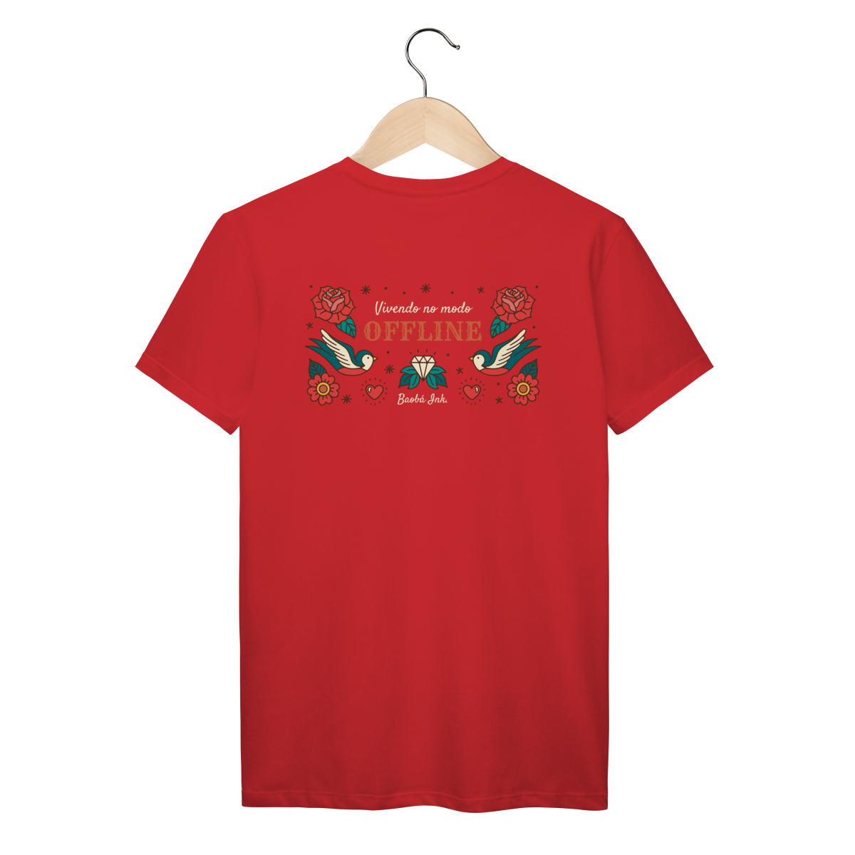 A T-Shirt Prime “Offline” da Baobá Ink é um lembrete pra desconectar do caos e reconectar com o essencial. A arte nas costas traz pássaros, flores e o símbolo da liberdade — um tributo visual à paz que vem quando a gente pausa.