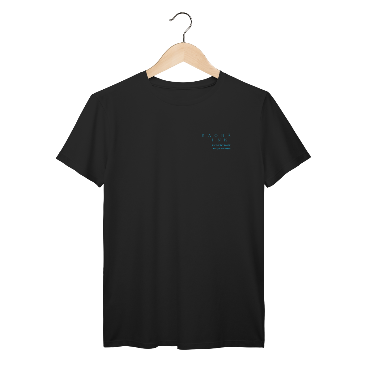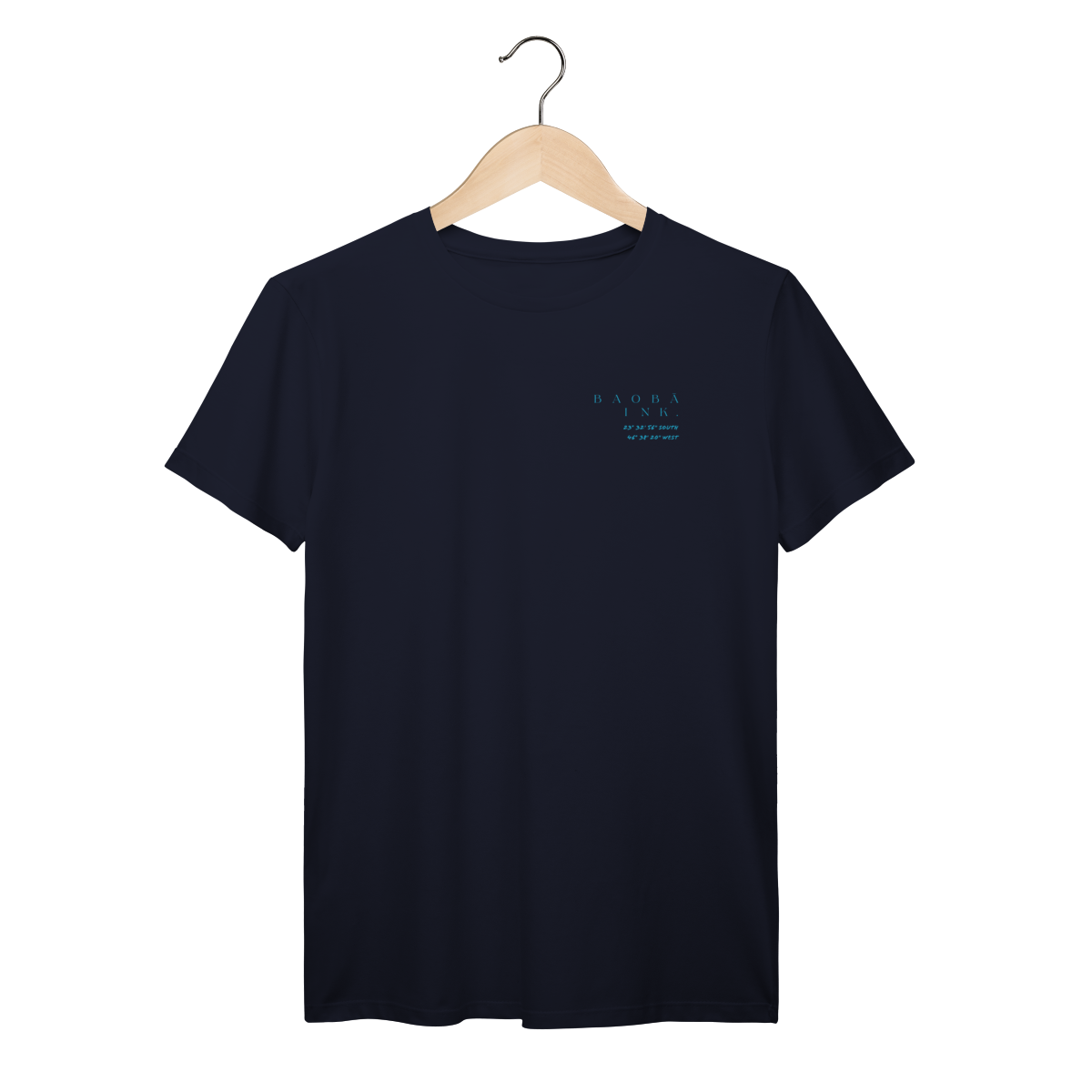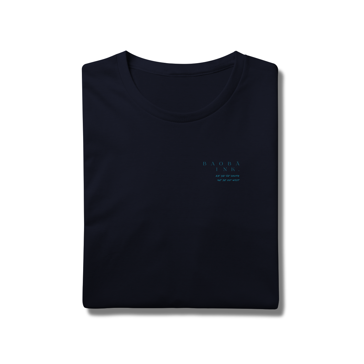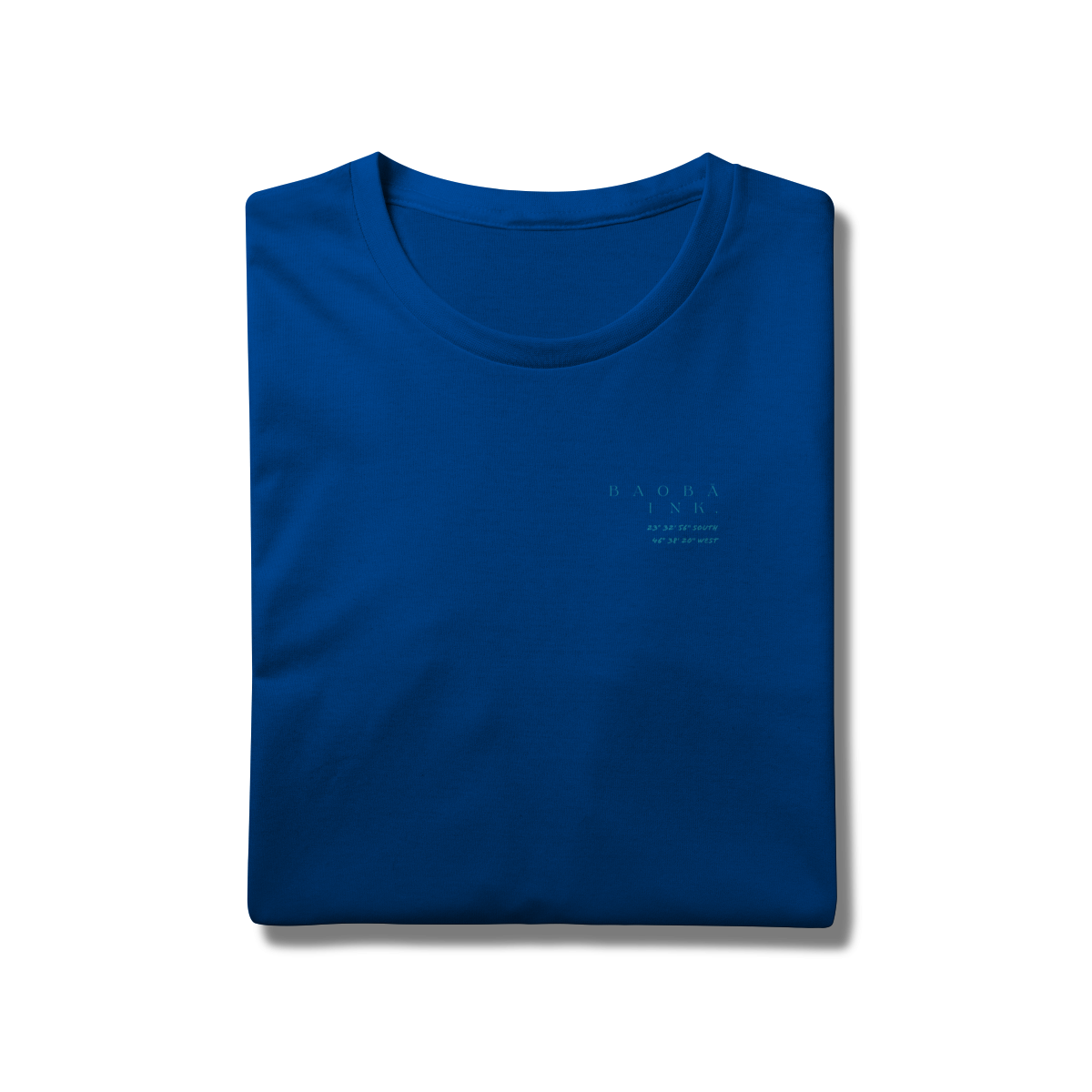 A arte minimalista em azul celeste imprime um visual moderno e contemplativo, combinando fotografia aérea e tipografia editorial — uma fusão de design, natureza e arte gráfica, assinatura da Baobá Ink.
