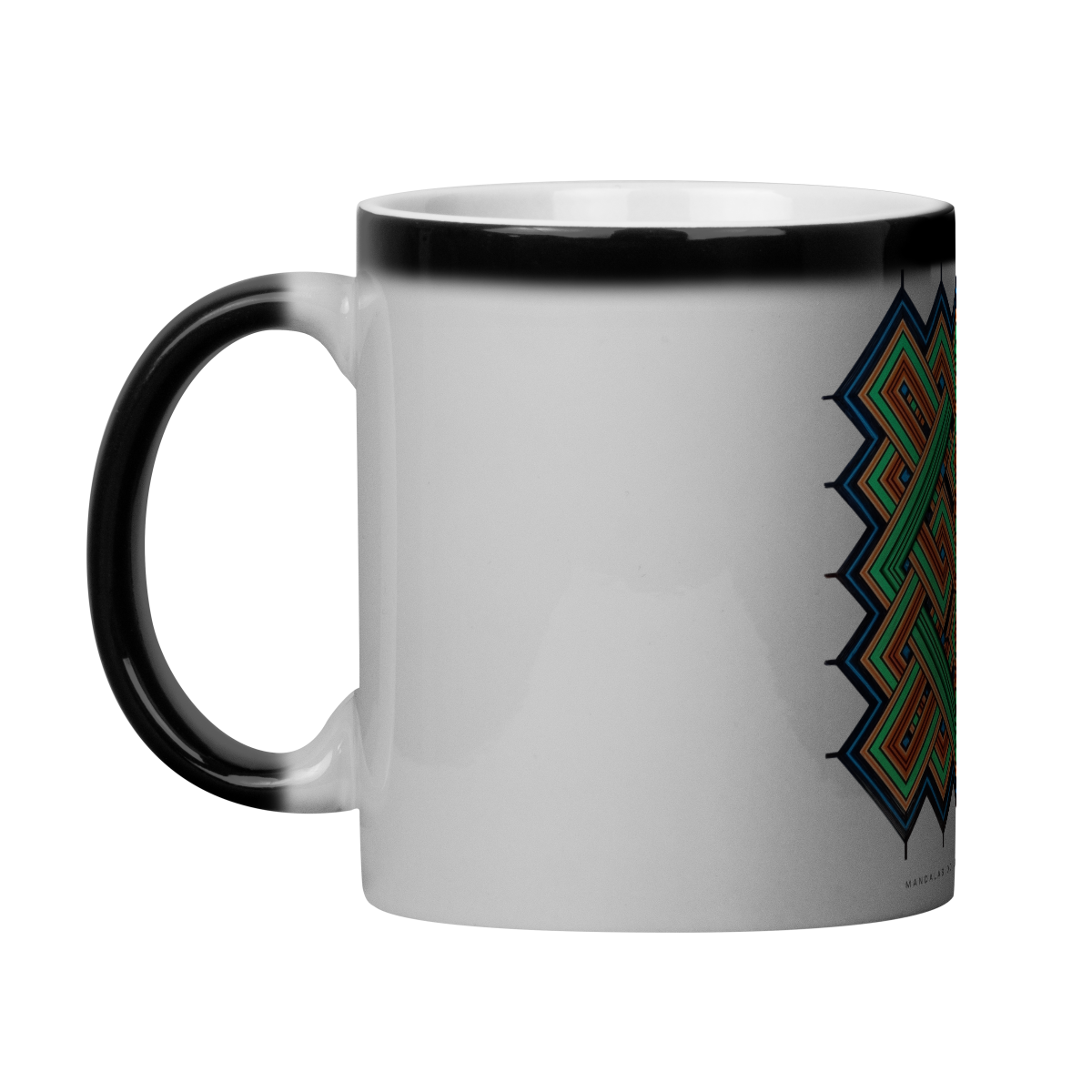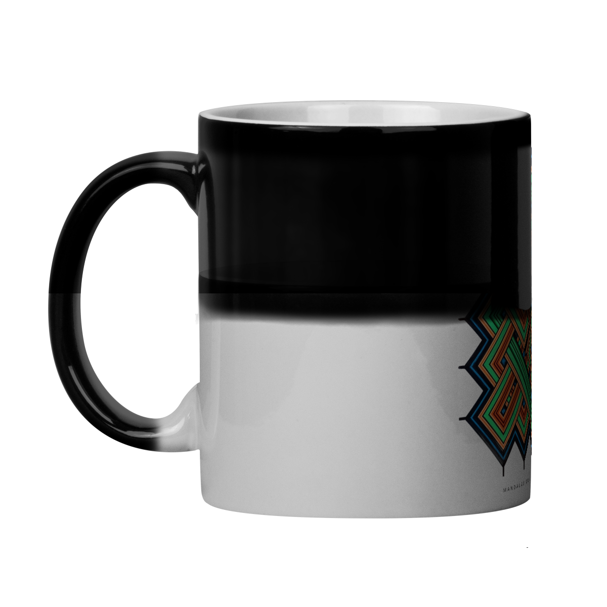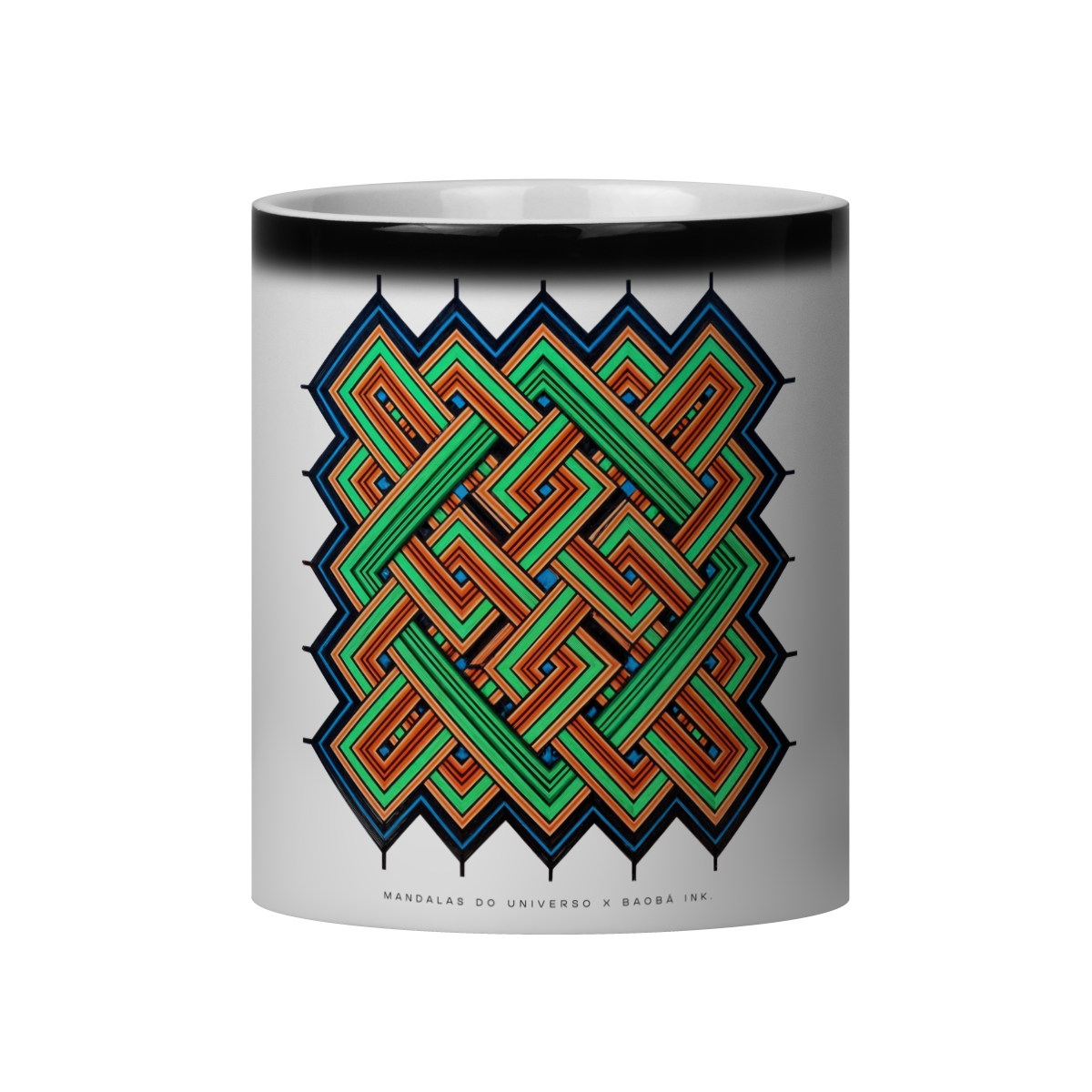 Surpreenda-se a cada gole com a Caneca Mágica Mandalas do Universo x Baobá Ink. À primeira vista, ela parece uma caneca comum, mas ao adicionar sua bebida quente, a estampa exclusiva de mandalas cósmicas se revela em cores vibrantes.
