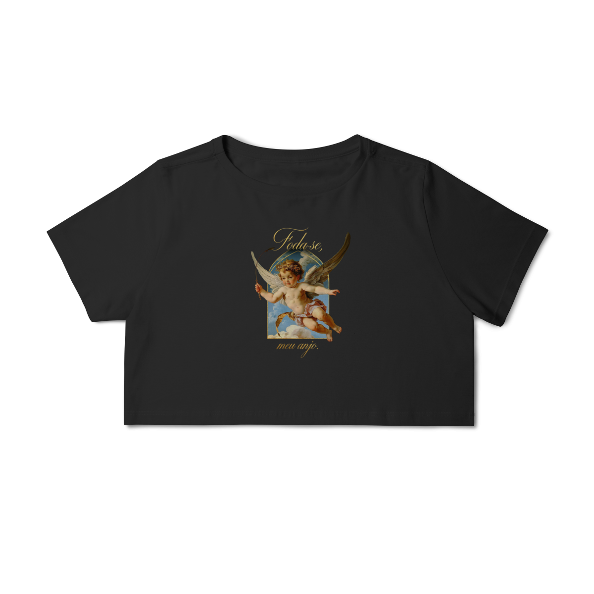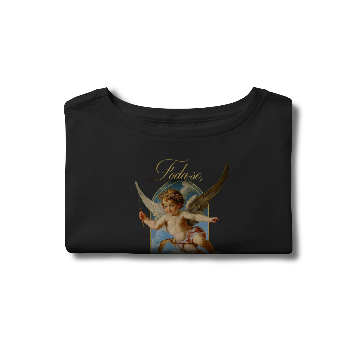 O Cropped “Foda-se, meu anjo.” é a mistura perfeita entre arte clássica e atitude moderna. A peça traz o querubim renascentista em contraste com a frase que já virou assinatura da Baobá Ink — pra quem vive entre o divino e o debochado.