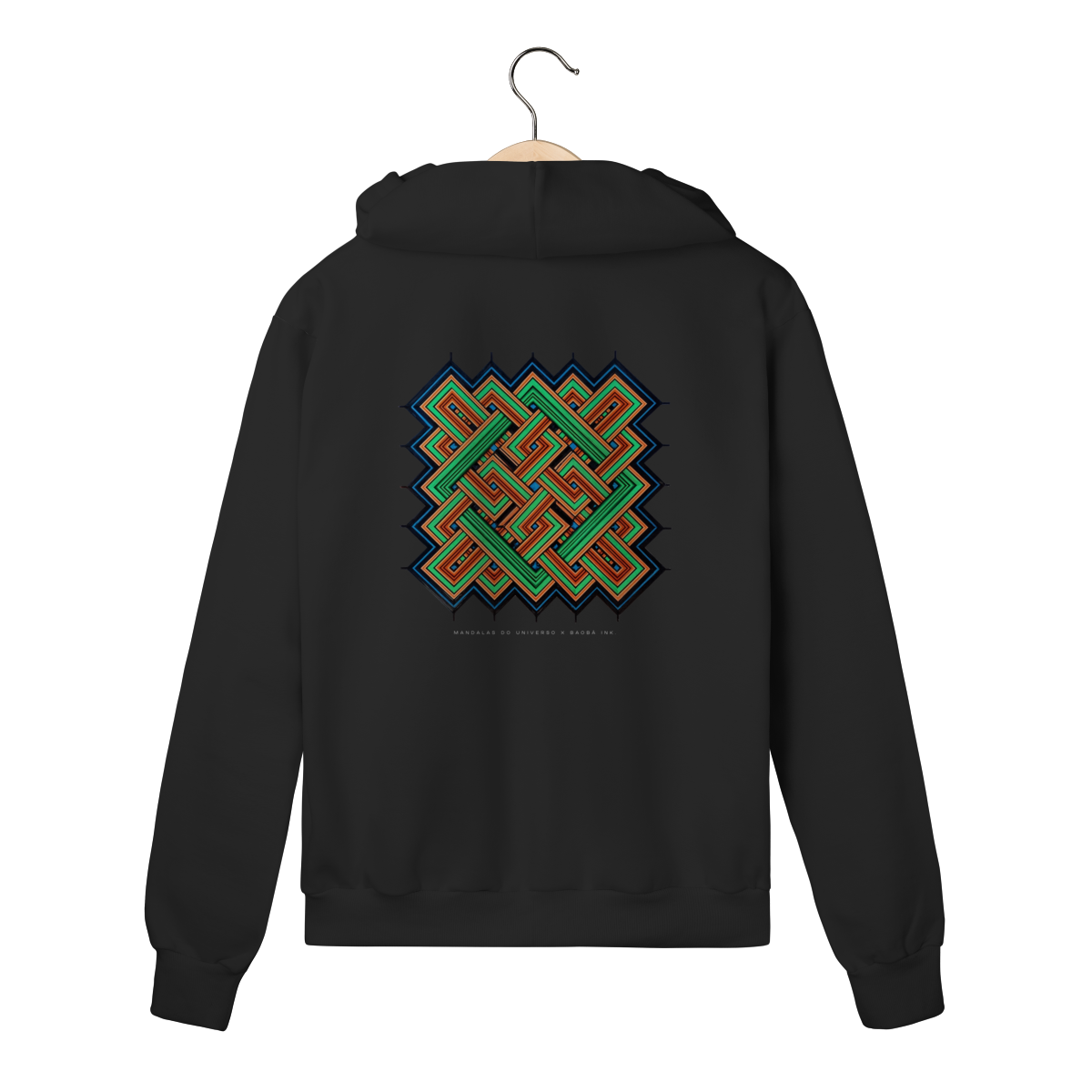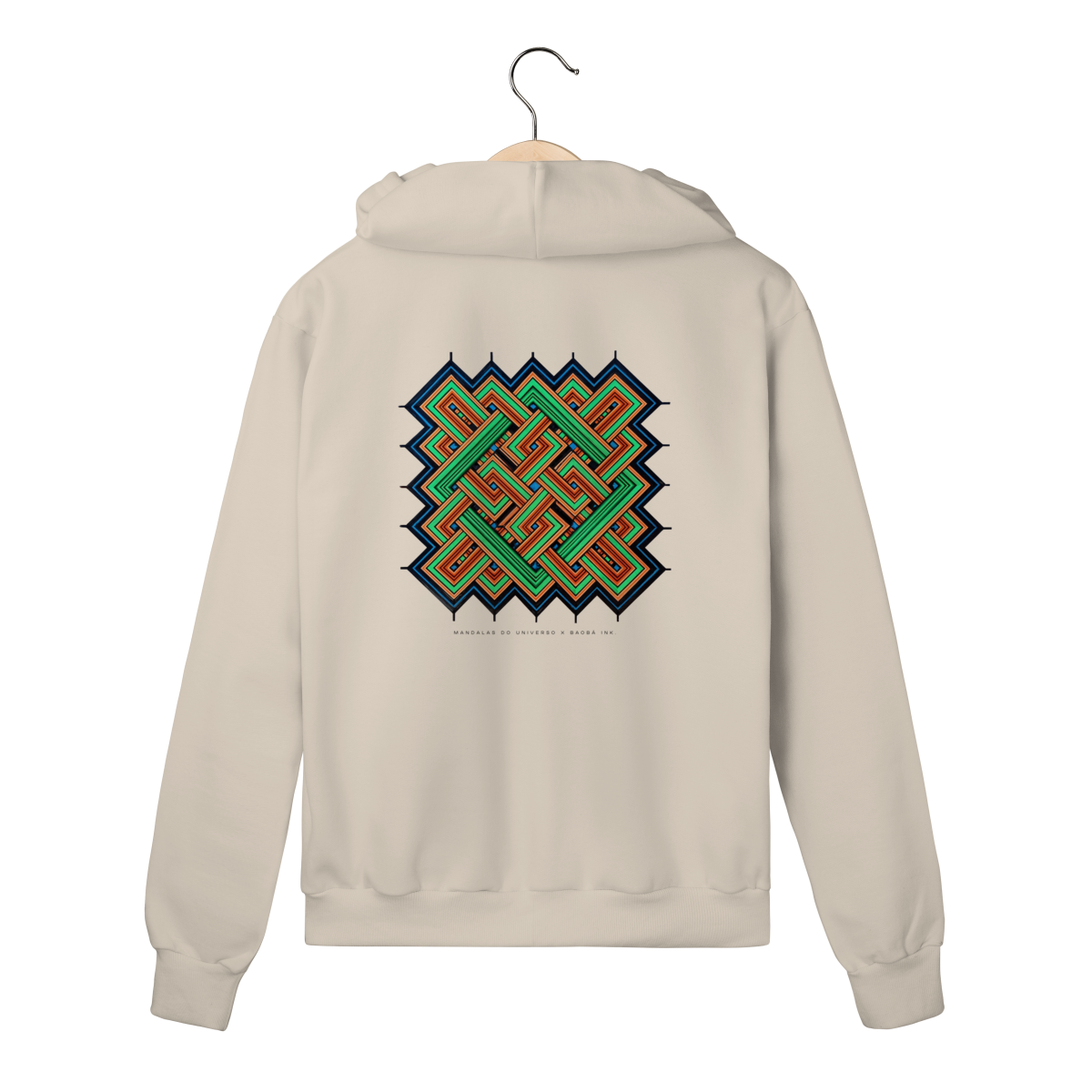 O Moletom Prime com Zíper Mandalas do Universo x Baobá Ink une conforto premium e design autêntico. Com estampa exclusiva nas costas, inspirada em mandalas cósmicas, ele traz estilo e personalidade para qualquer ocasião.