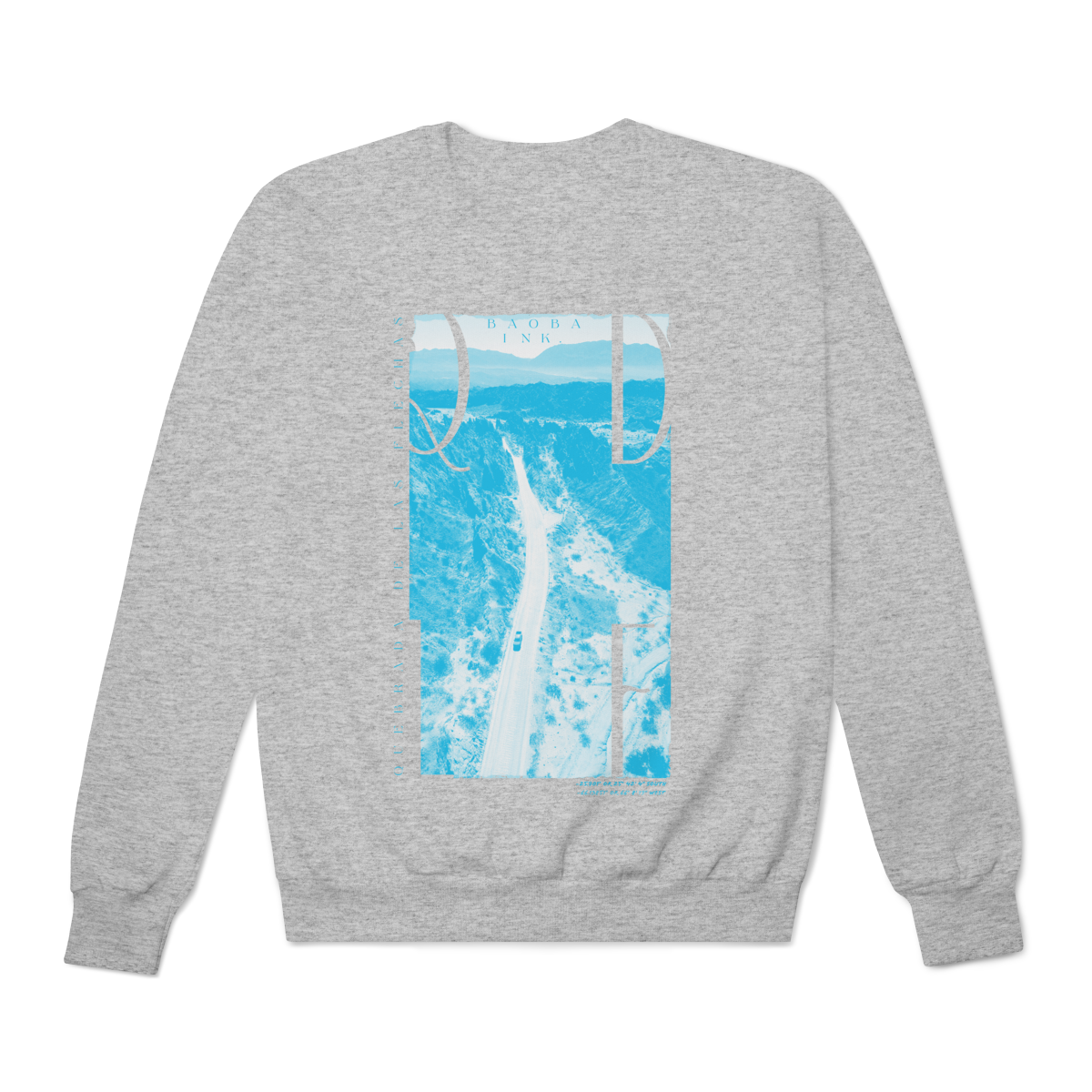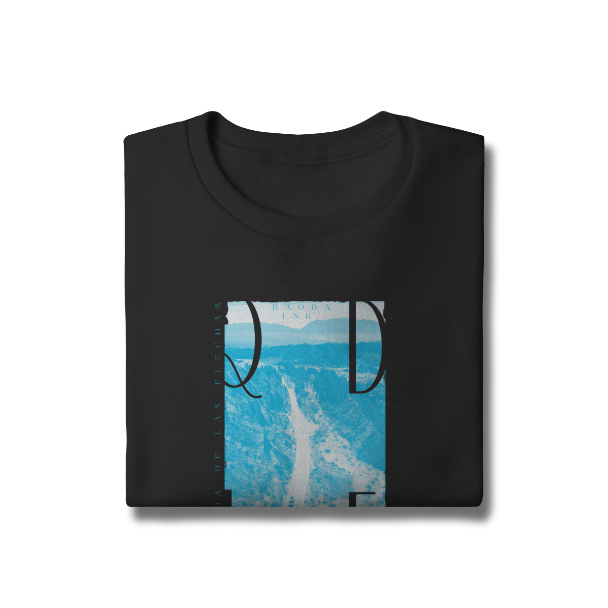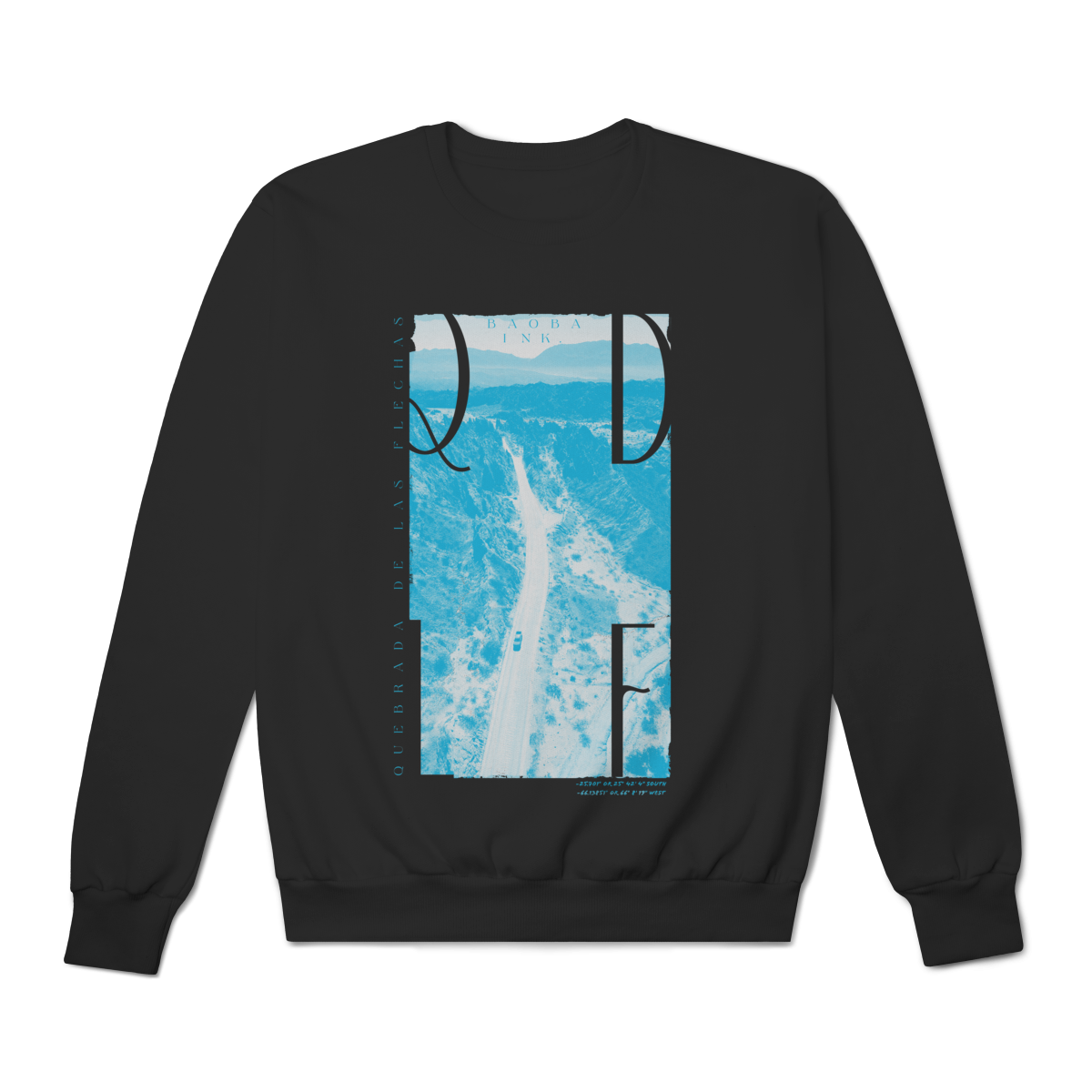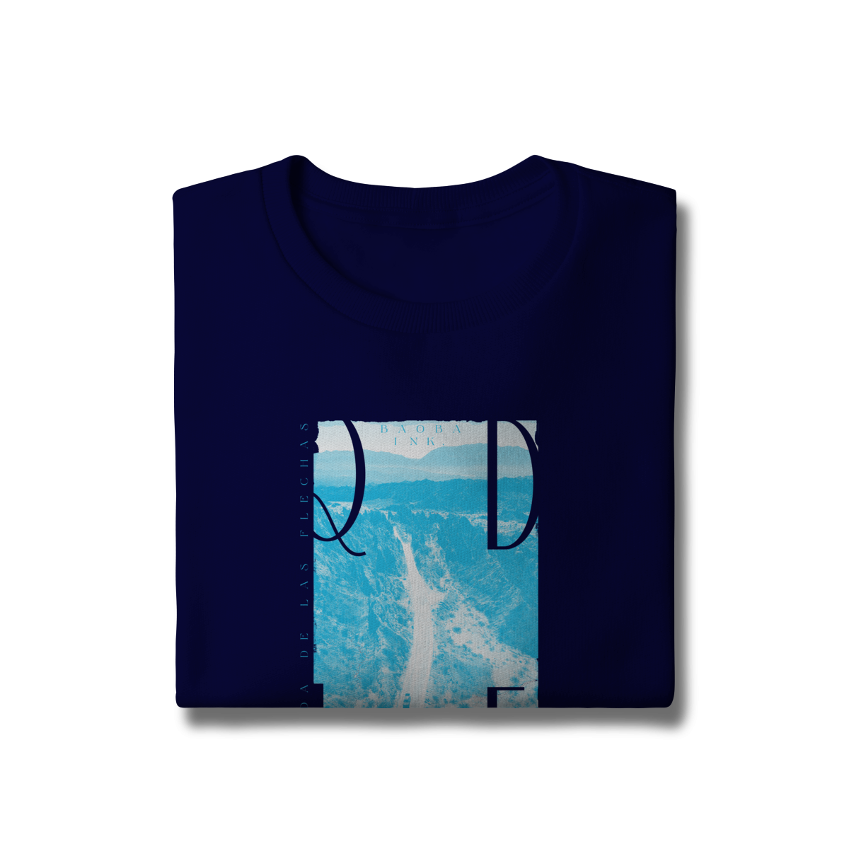 Inspirado na imensidão da Quebrada de las Flechas, no norte argentino, este moletom traduz o silêncio das estradas e a força das montanhas em uma arte minimalista azul celeste — marca registrada da Baobá Ink.