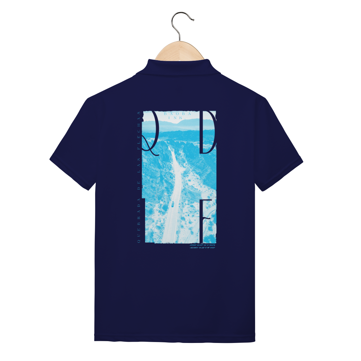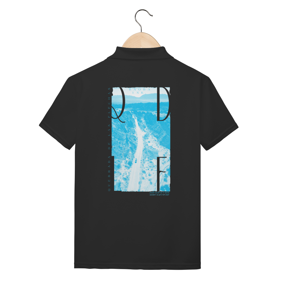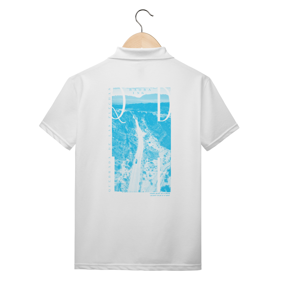 A Polo Quebrada de las Flechas combina o corte tradicional e elegante da camisa polo com a estética minimalista da coleção Baobá Ink — inspirada nas paisagens áridas e nas rotas solitárias do norte argentino.
