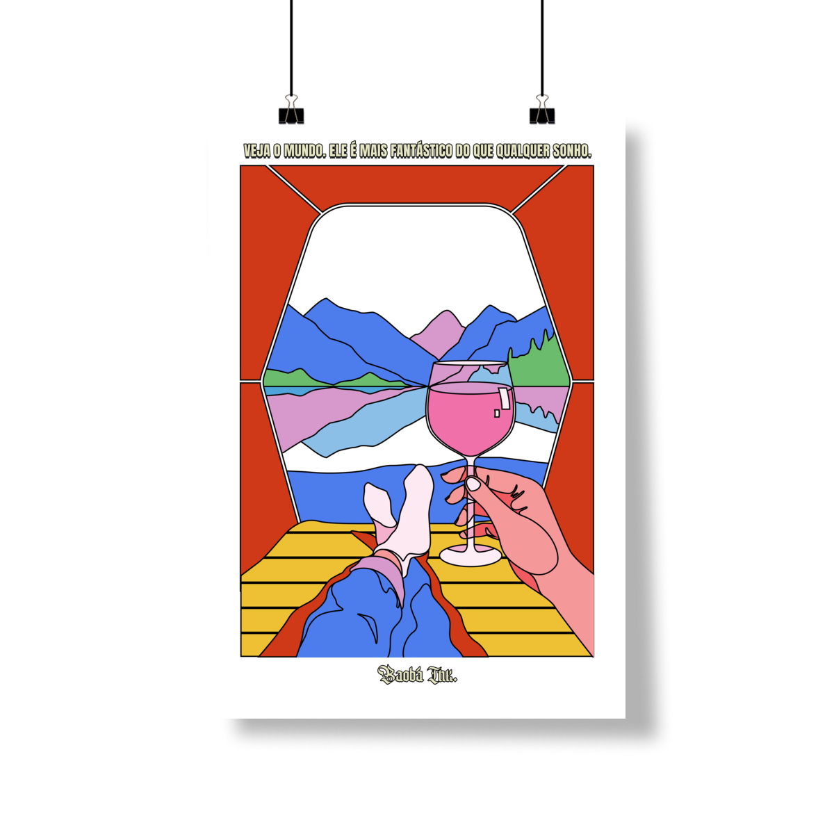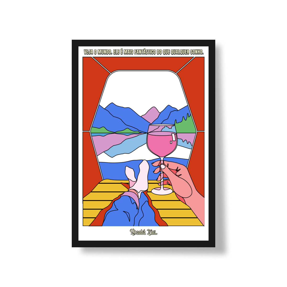 O pôster “Veja o Mundo” traz a arte exclusiva da Baobá Ink — uma celebração da liberdade, da viagem e da beleza de estar presente. Cores vibrantes, traços modernos e uma mensagem que inspira: o mundo é mais fantástico do que qualquer sonho.