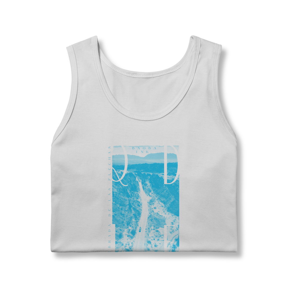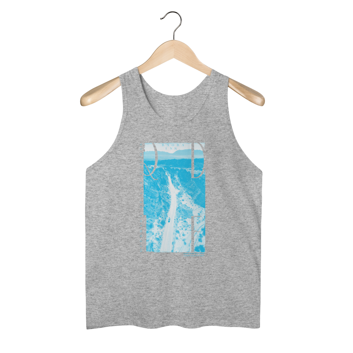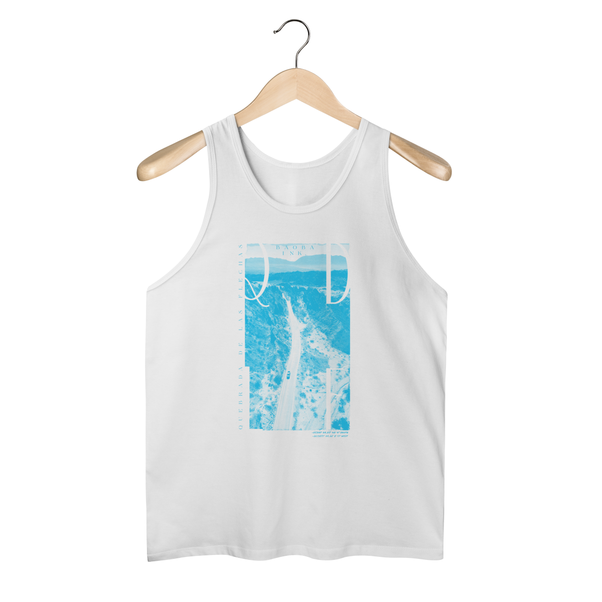 Com arte minimalista em azul celeste, é uma peça ideal para dias quentes, viagens ou o cotidiano urbano — combinando conforto, frescor e identidade visual.