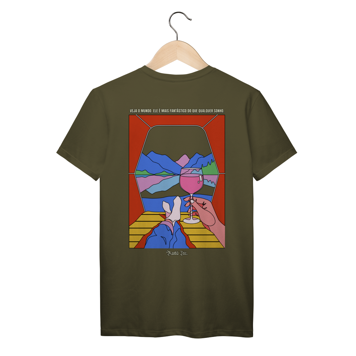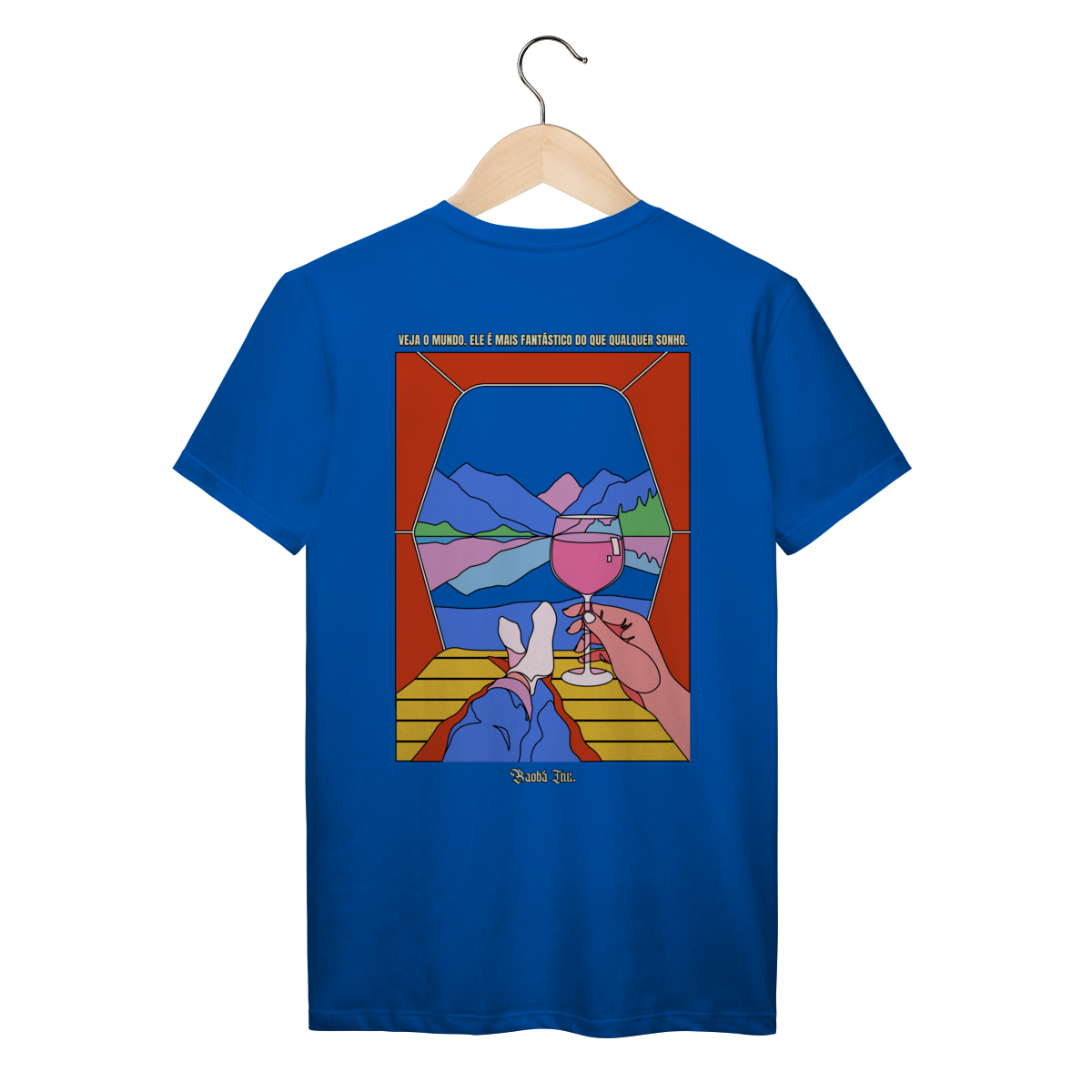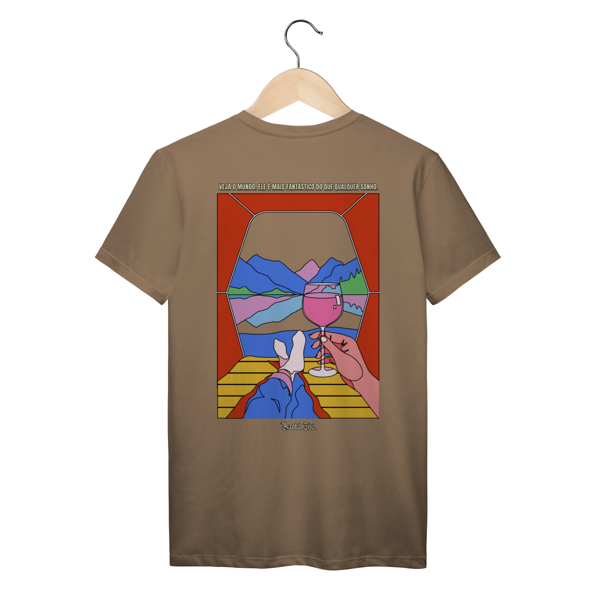 A estampa “Veja o Mundo” traz uma ilustração exclusiva da Baobá Ink inspirada na sensação de observar a imensidão lá fora — um lembrete de que o mundo real é mais fantástico do que qualquer sonho.
